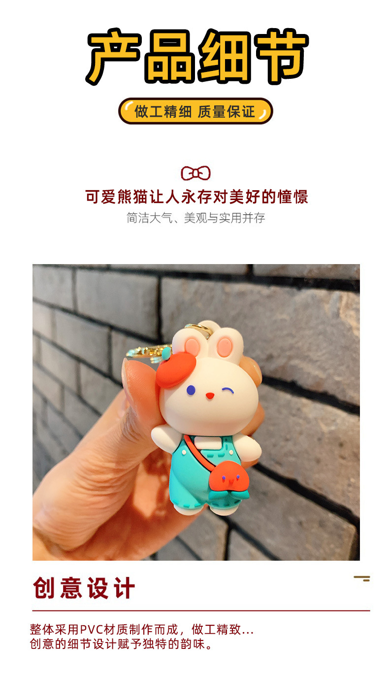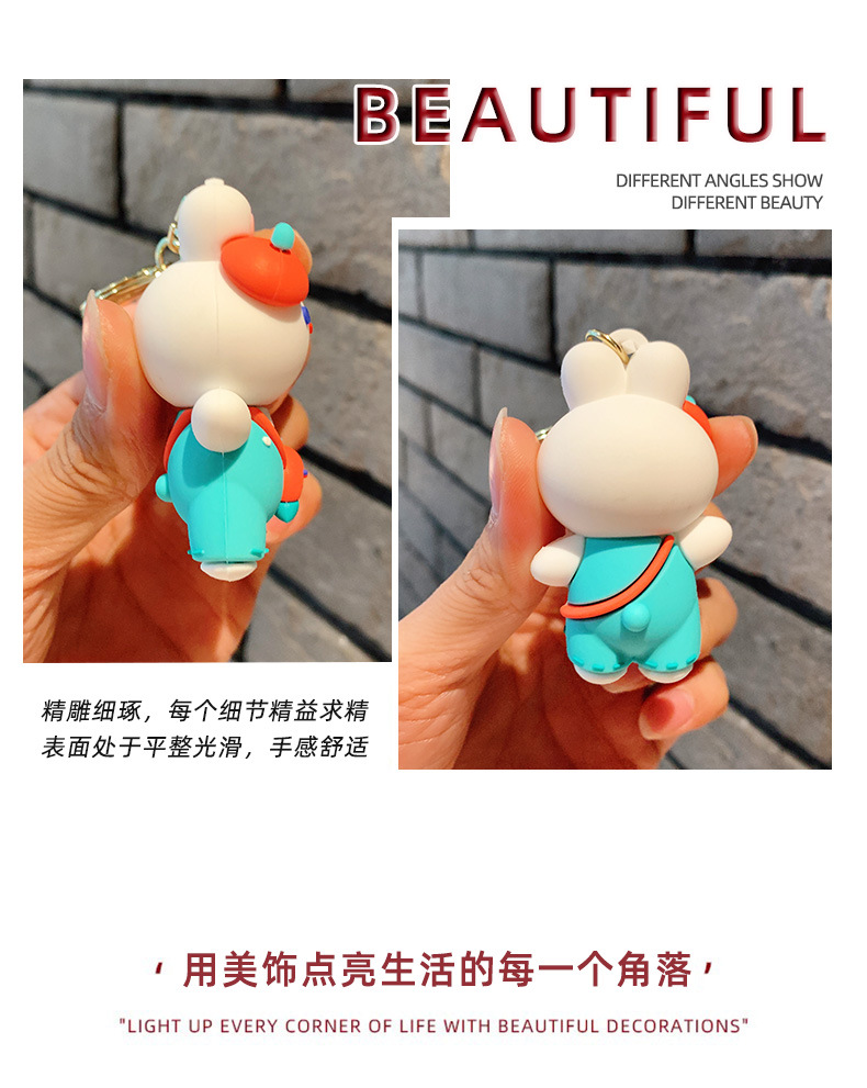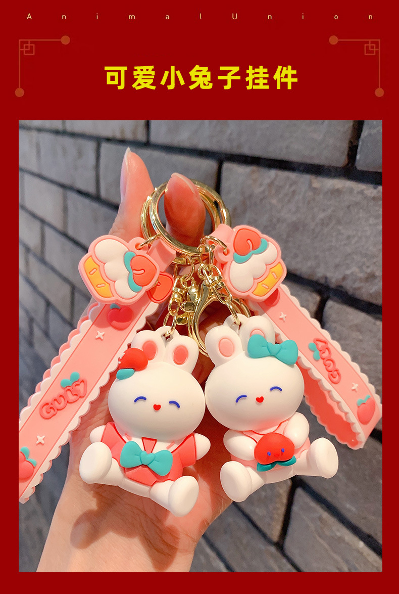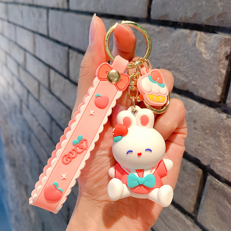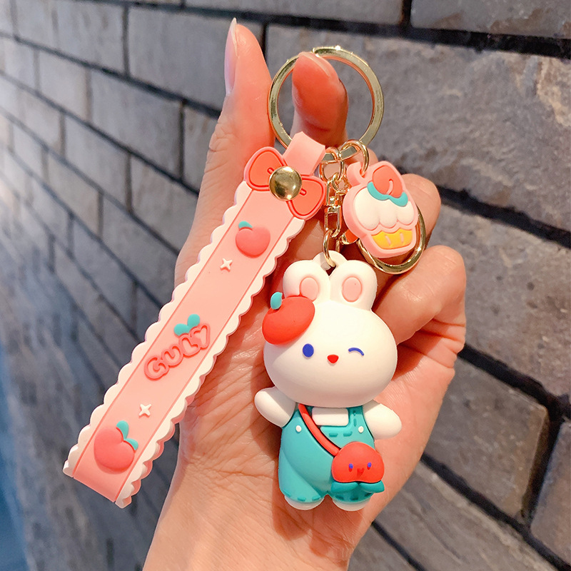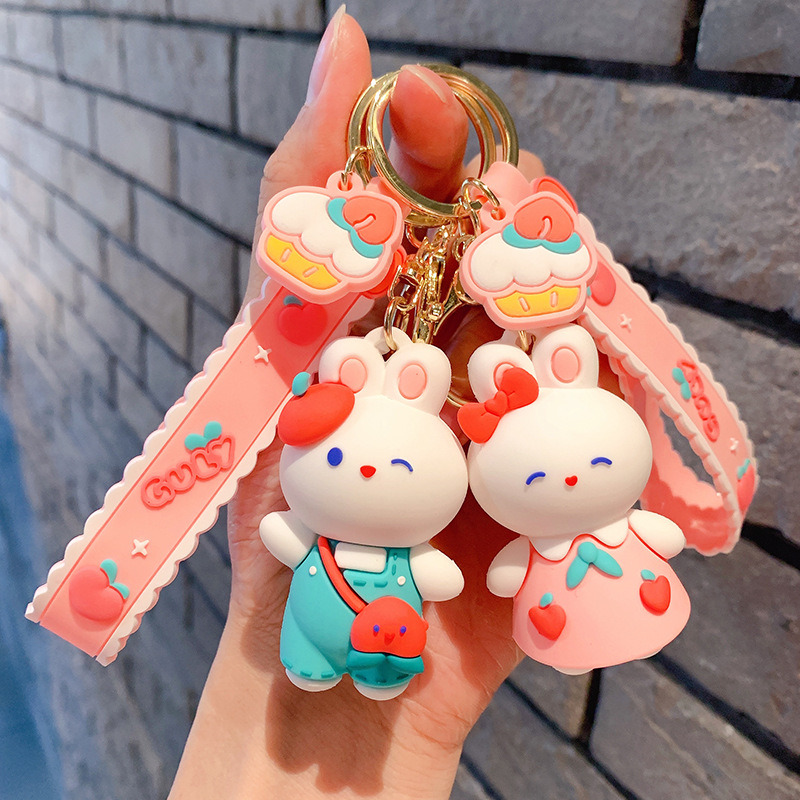 Lindo conejito muñeca llavero coche colgante simple dibujos animados conejo blanco muñeca llavero anillo pequeña joyería