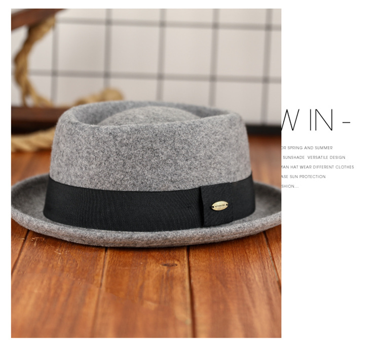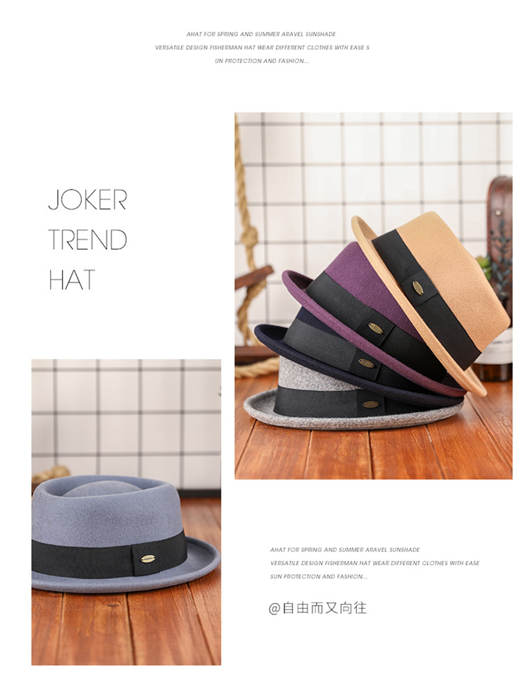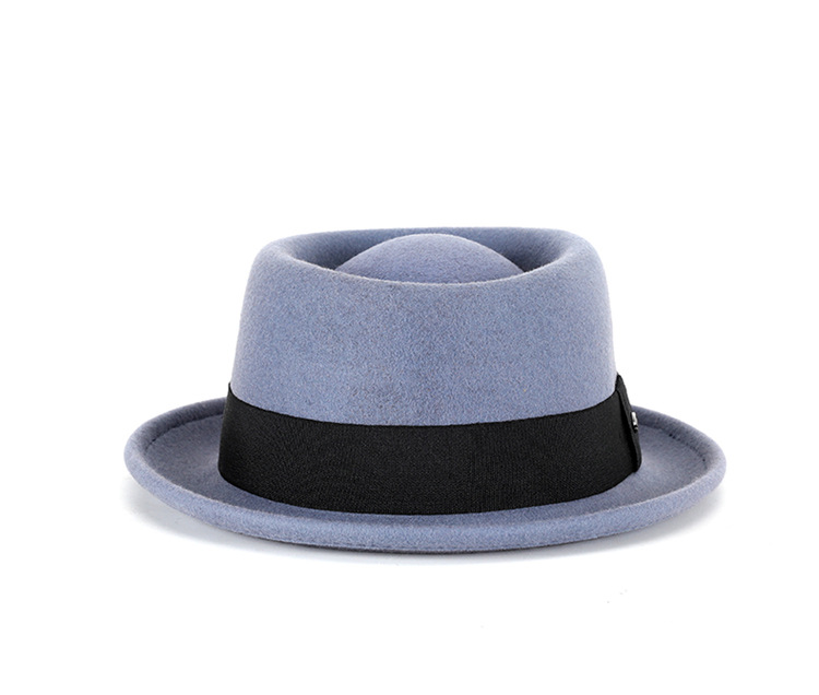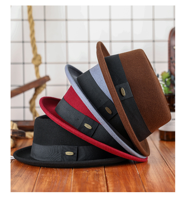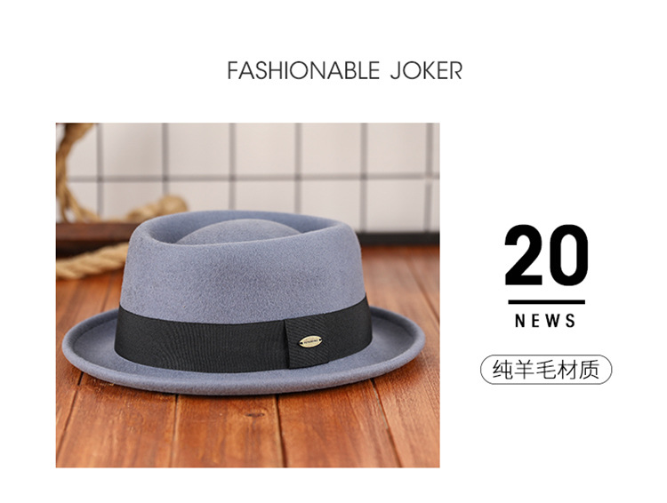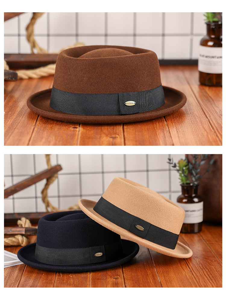 Otoño e invierno nuevo sombrero de lana pura cóncavo-convexo superior moda cálida cinta retro estilo británico gentleman sombrero de fieltro francés