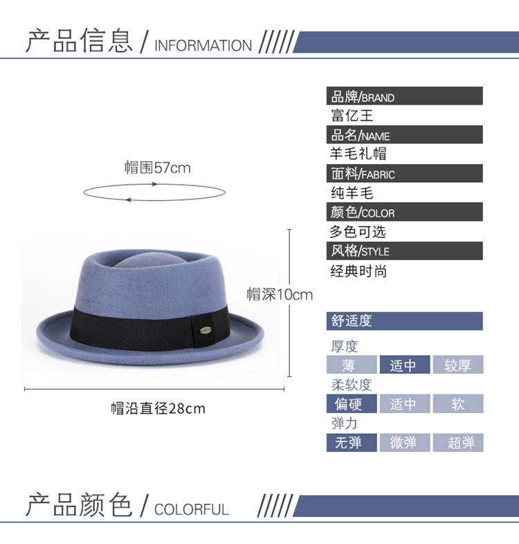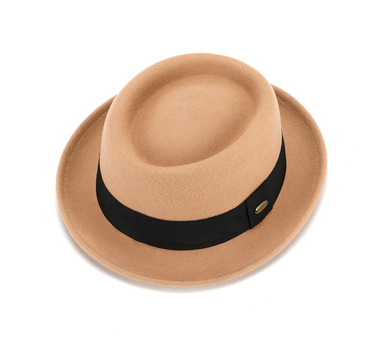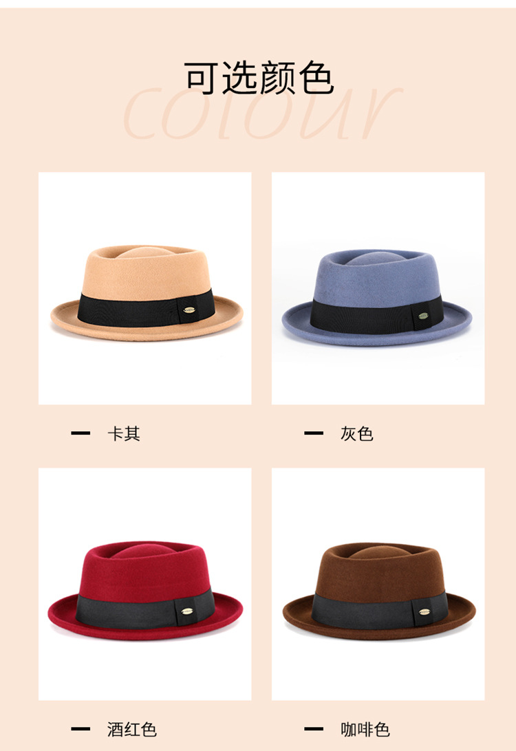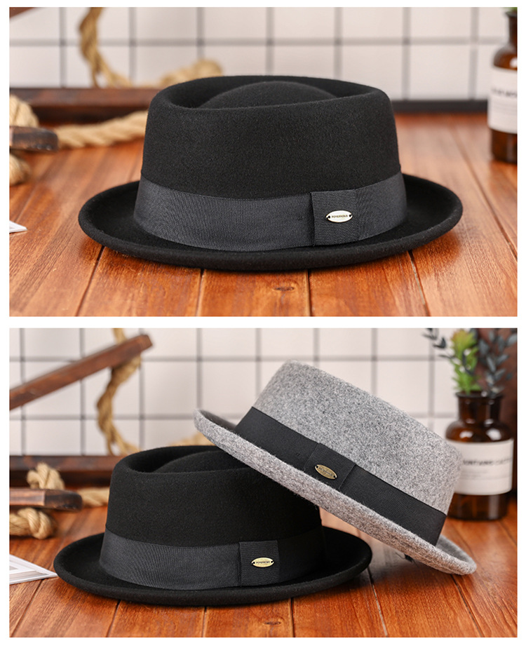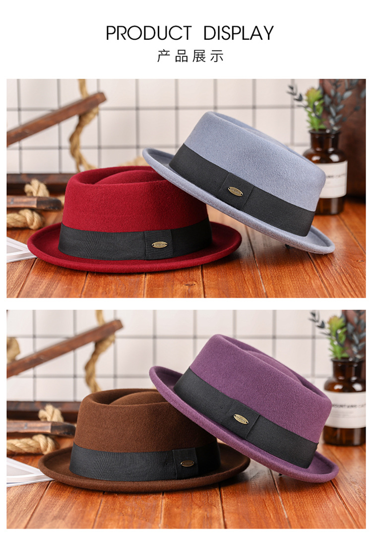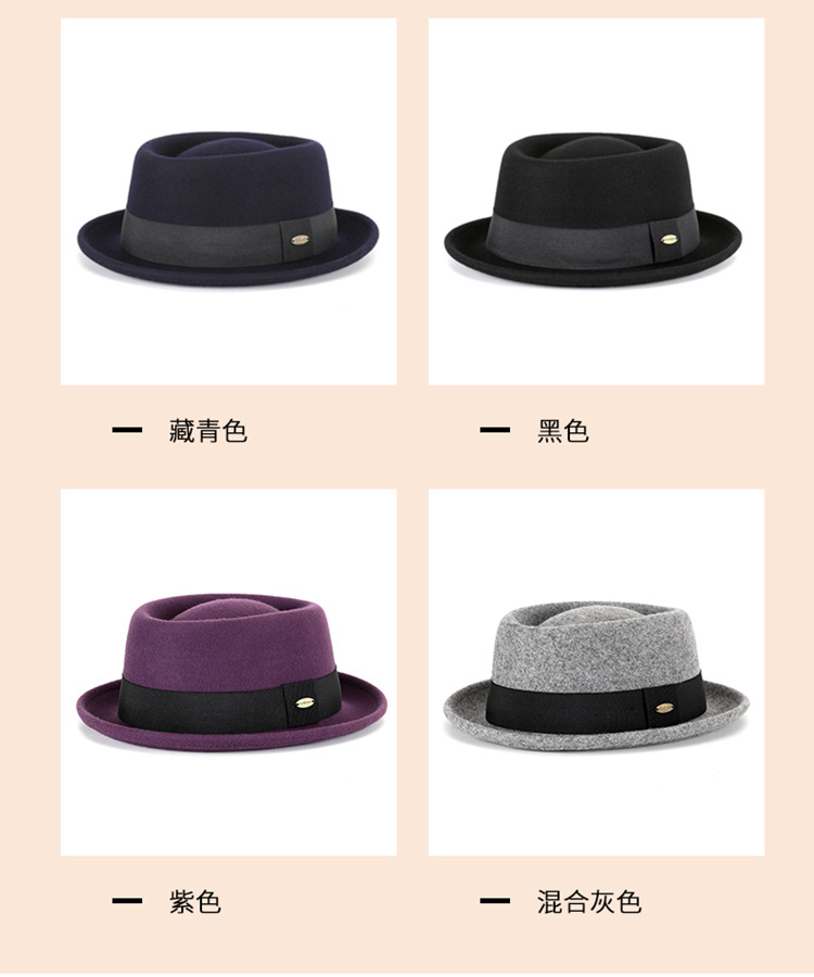 Otoño e invierno nuevo sombrero de lana pura cóncavo-convexo superior moda cálida cinta retro estilo británico gentleman sombrero de fieltro francés