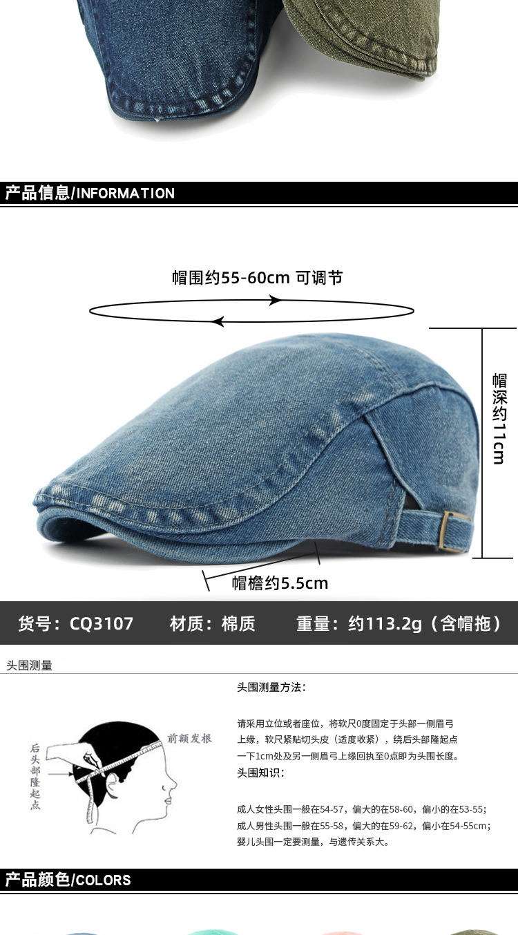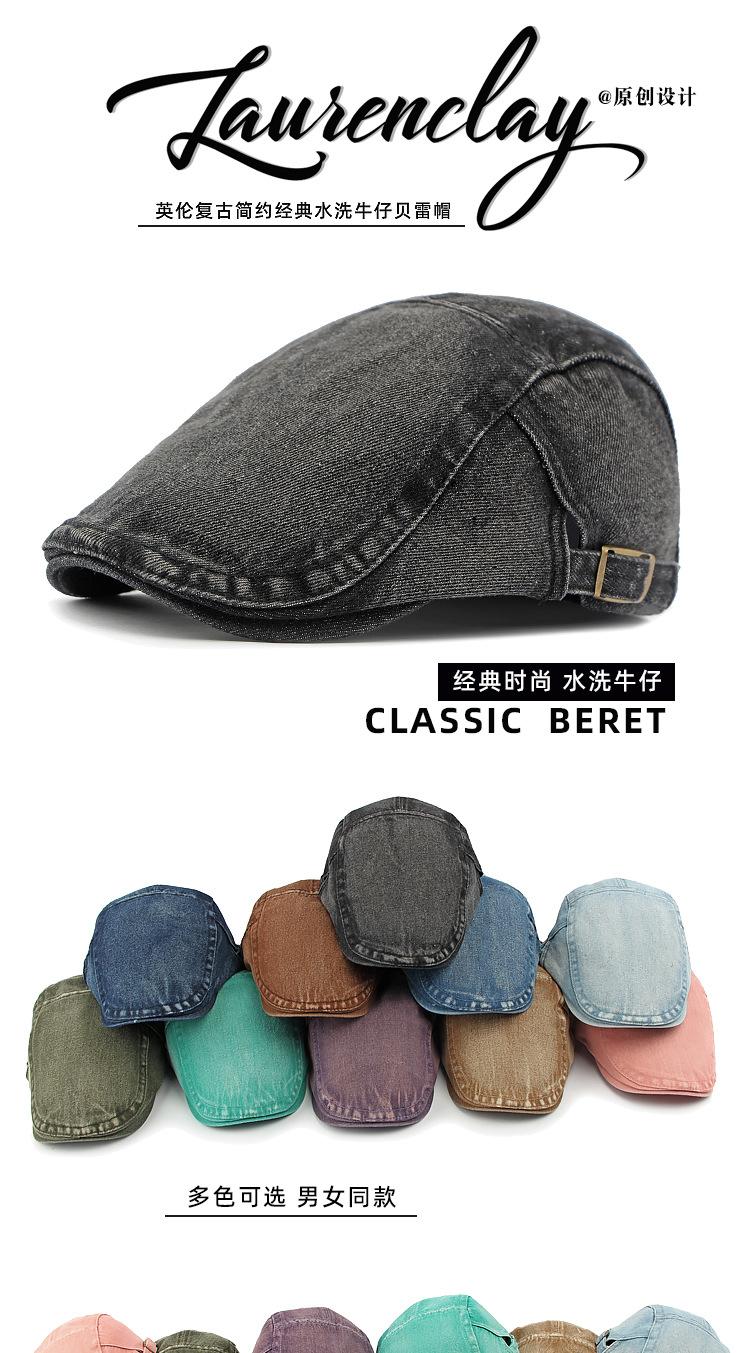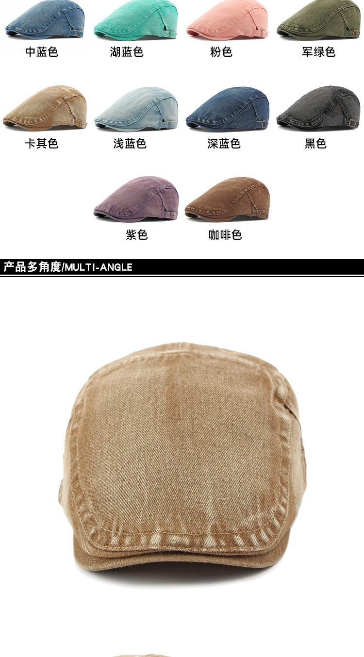 Sombrero de vaquero coreano de lavado de agua Boina de dama Inglés retro simple gorra de boca de pato gorra de algodón hombre
