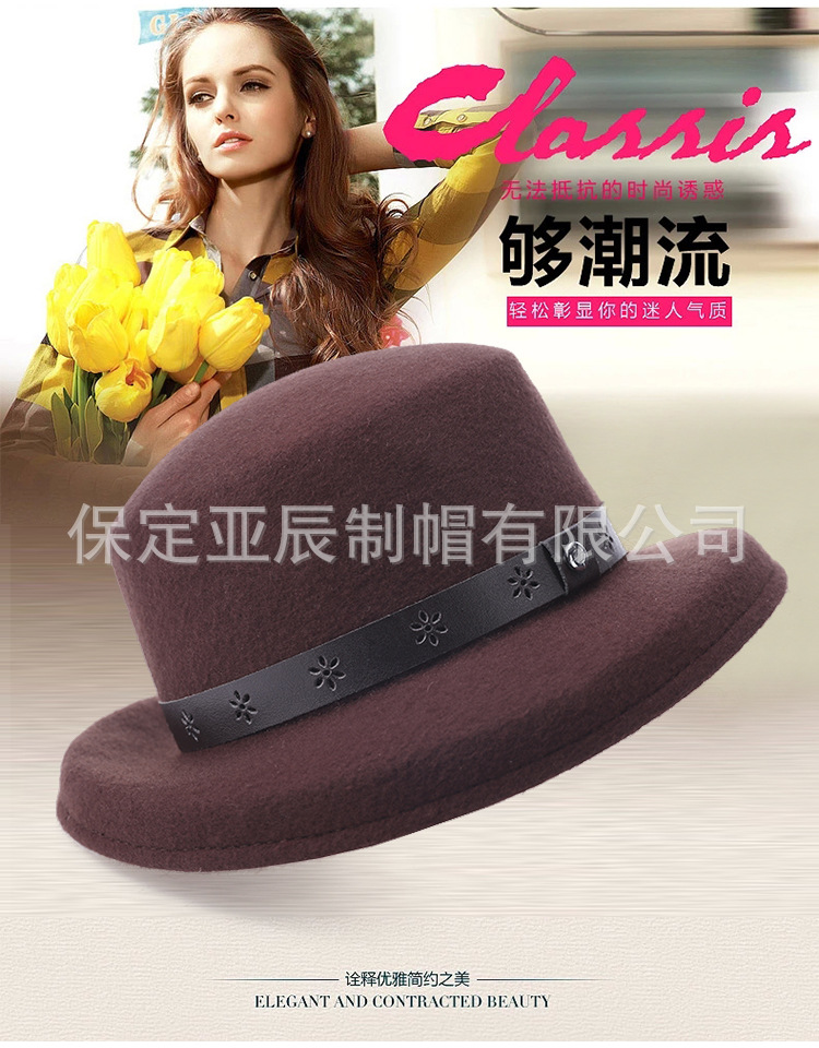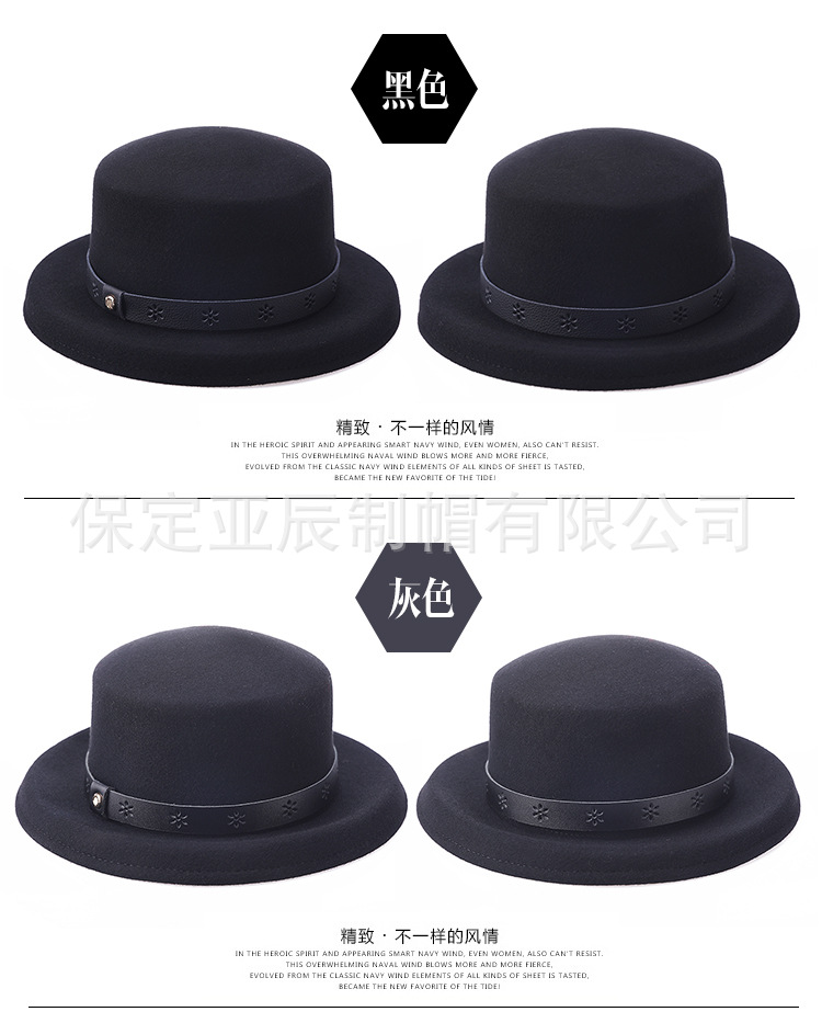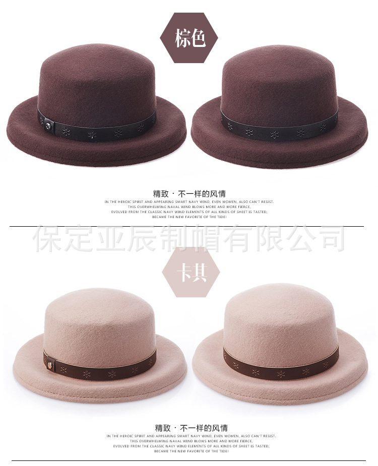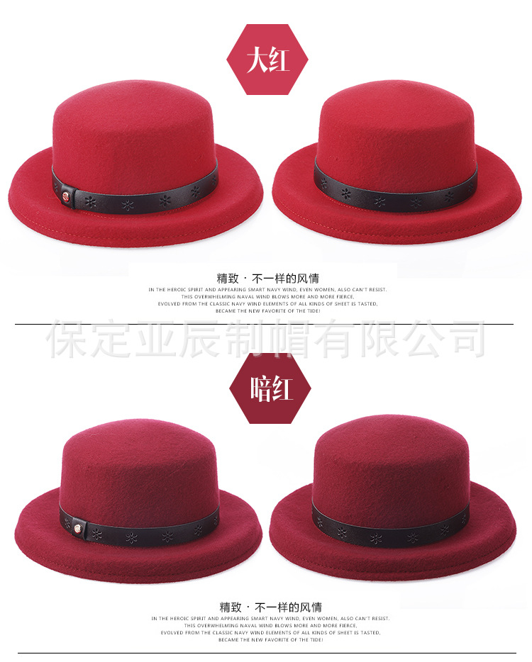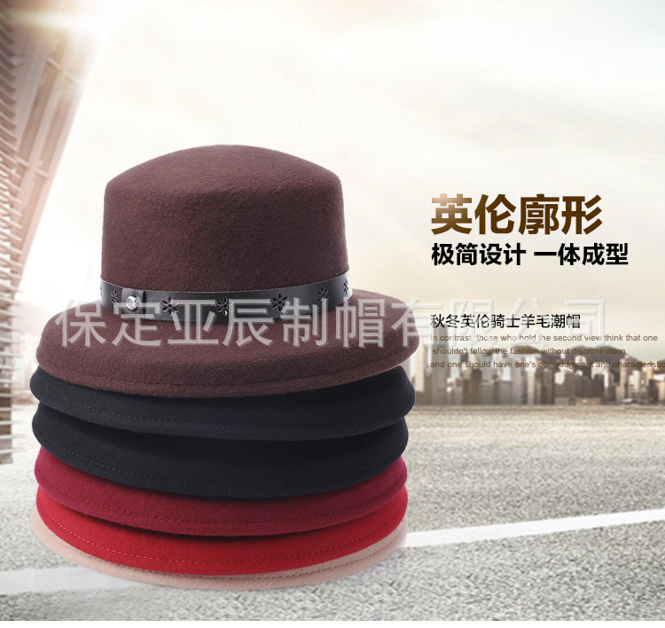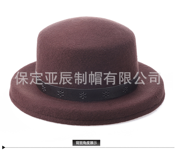 Sombrero de otoño e invierno lana pura Flat Top curling moda sombrero del jugador bolos decoración cuero Británico fuerza fábrica al por mayor
