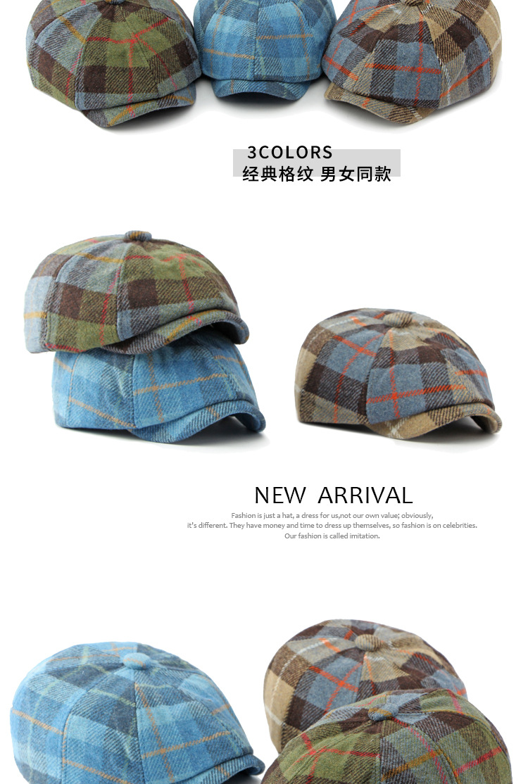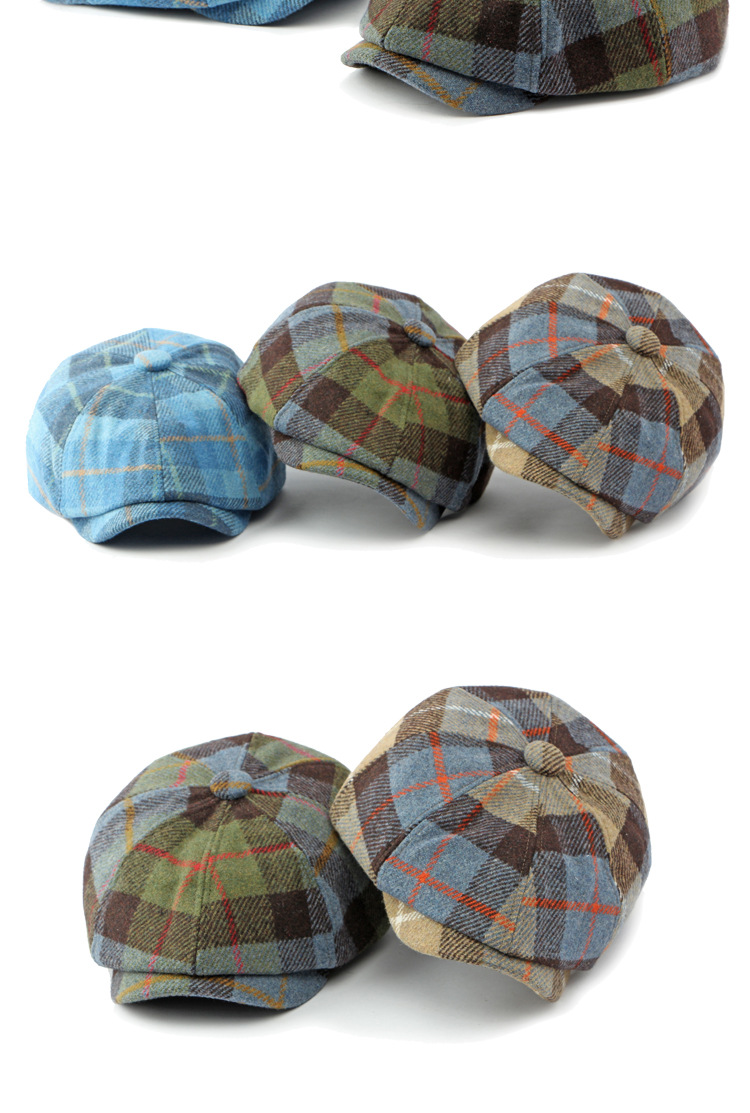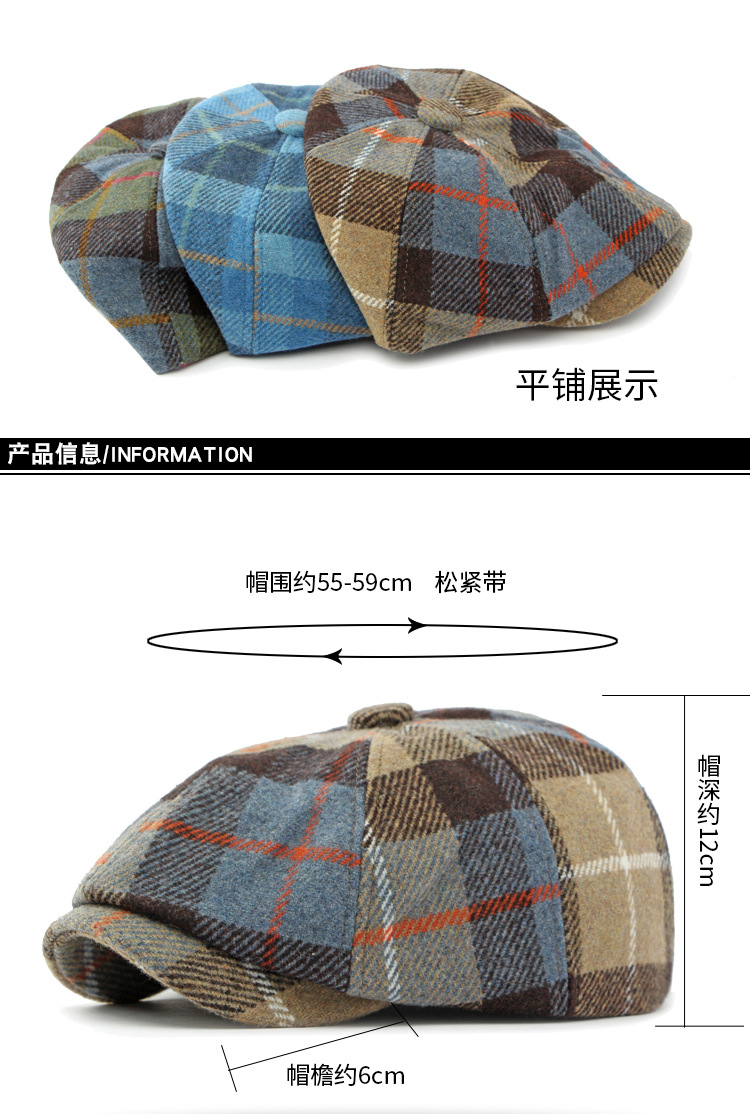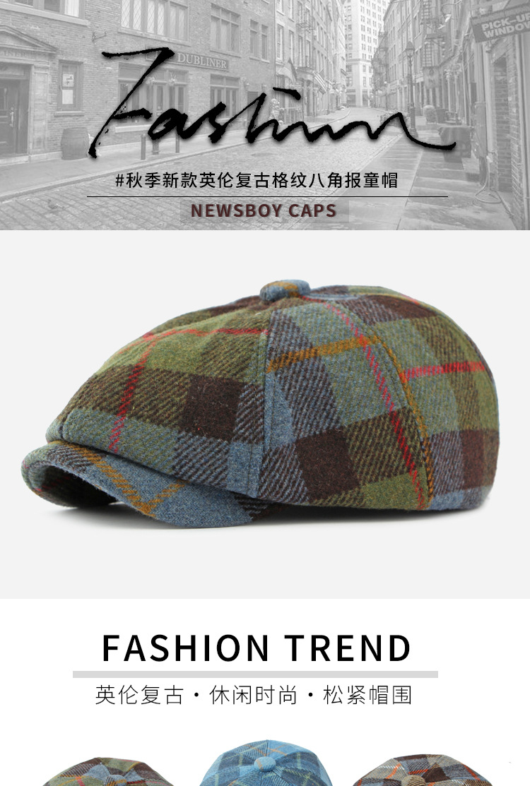 2023 otoño nuevo octogonal sombrero hombres y mujeres británico vintage boina de lana a cuadros newsboy sombrero casquillo
