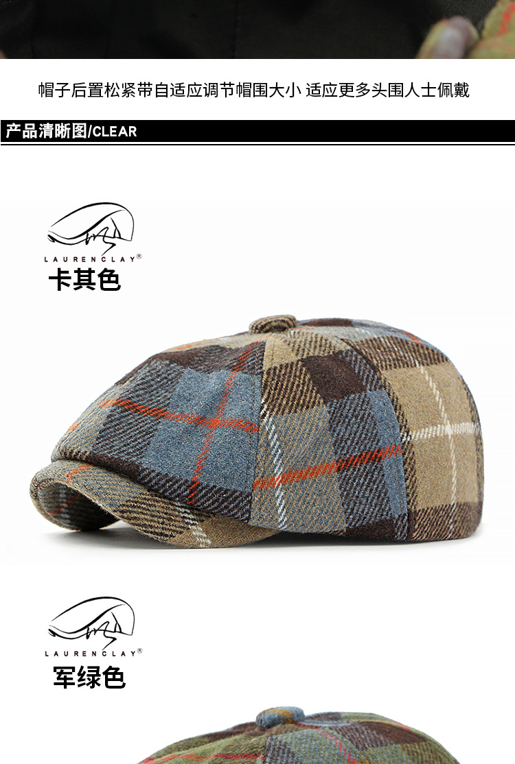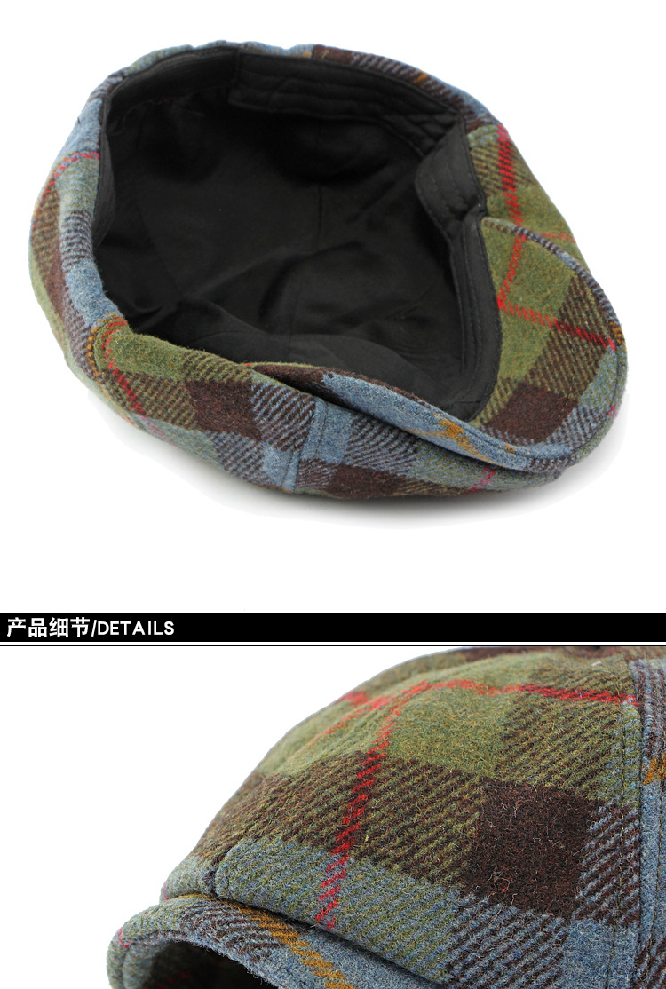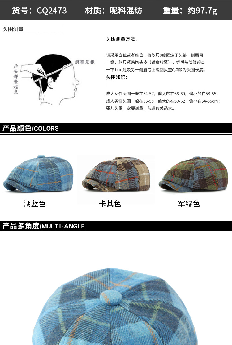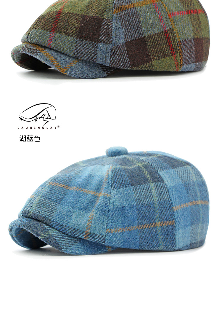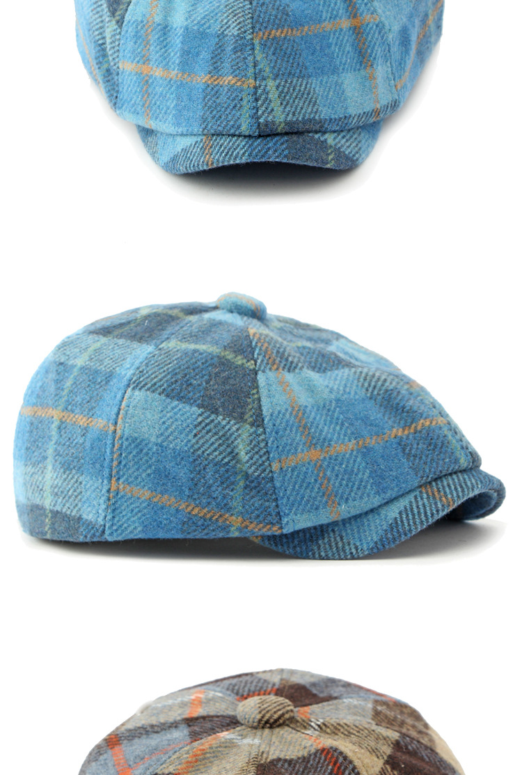 2023 otoño nuevo octogonal sombrero hombres y mujeres británico vintage boina de lana a cuadros newsboy sombrero casquillo