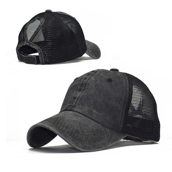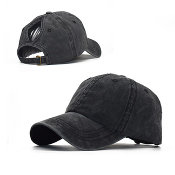 Gorra de béisbol de tela lavada transfronteriza Comercio exterior europeo y americano de moda borde curvo tapa enarbolada primavera y verano deportes al aire libre de las mujeres tablero de luz sombrero para el sol