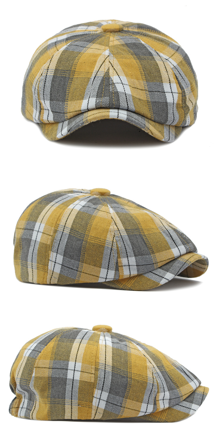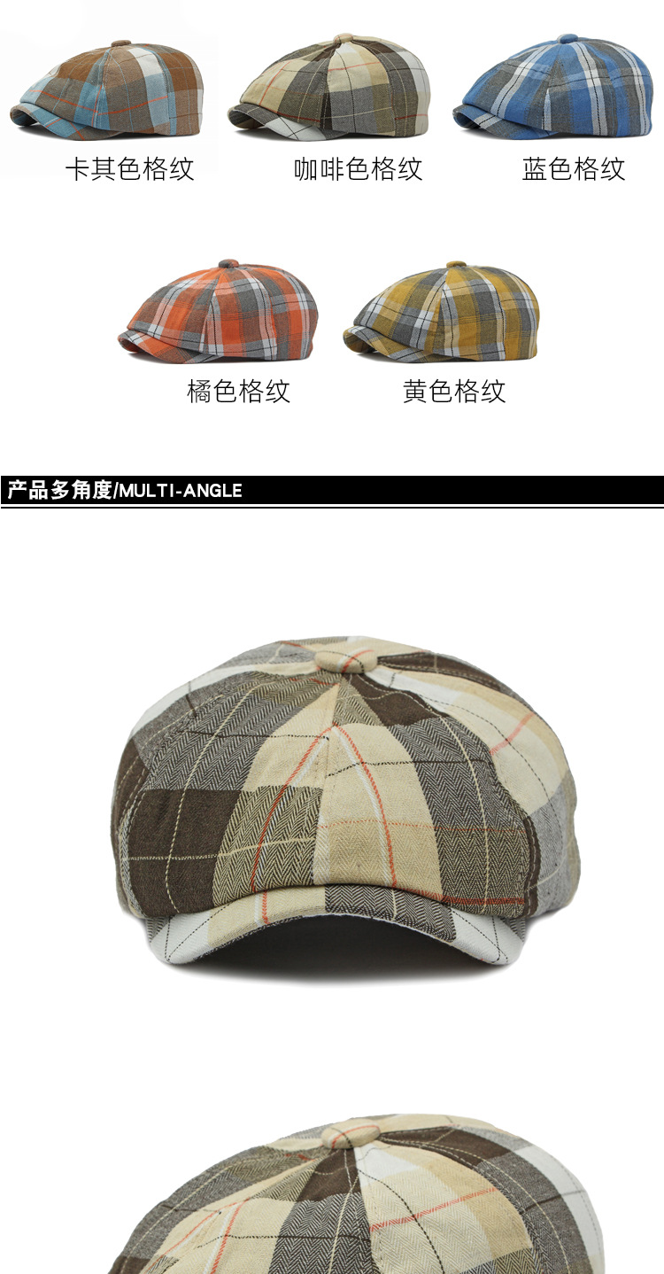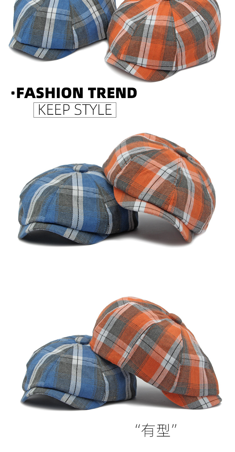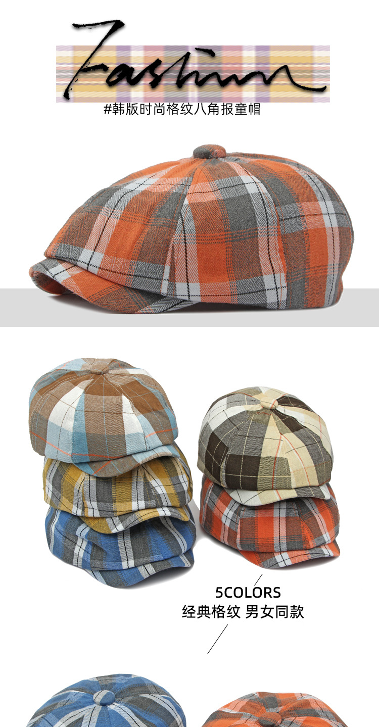 Estilo coreano moda Plaid octogonal sombrero hombres y mujeres primavera y verano boina delgada británico retro newsboy sombrero pintor sombrero