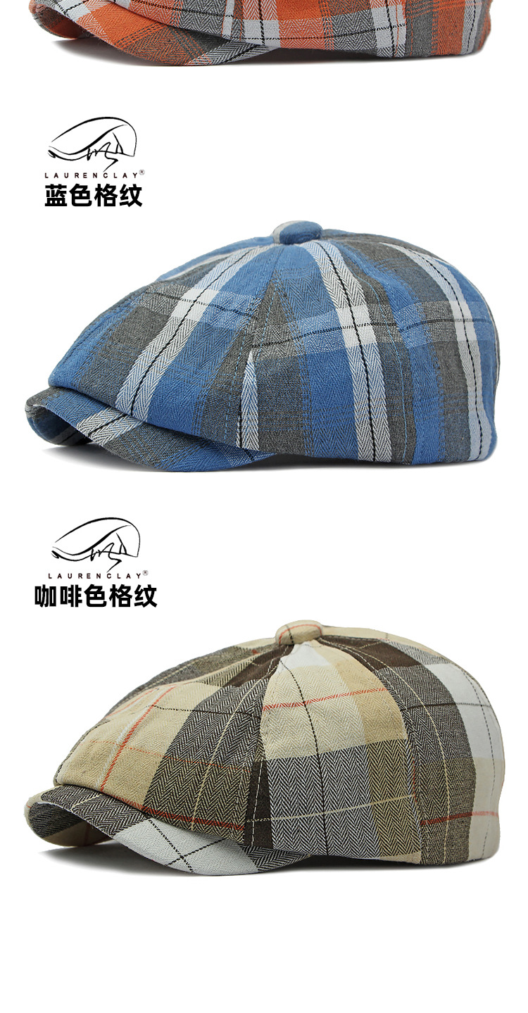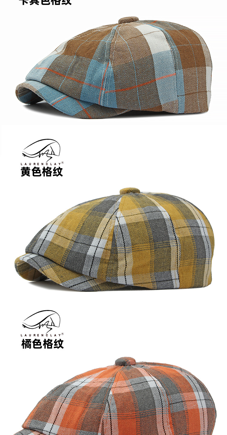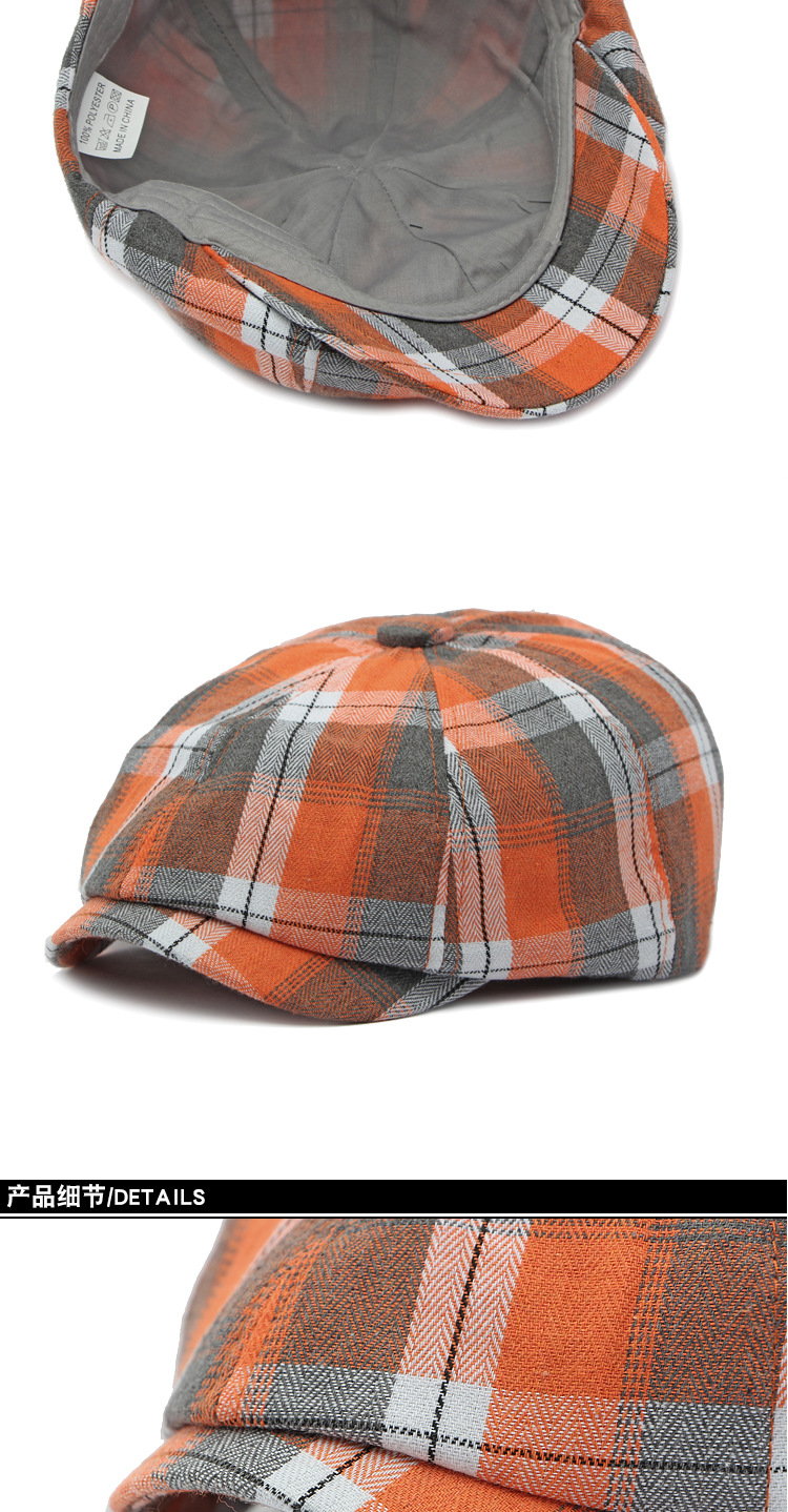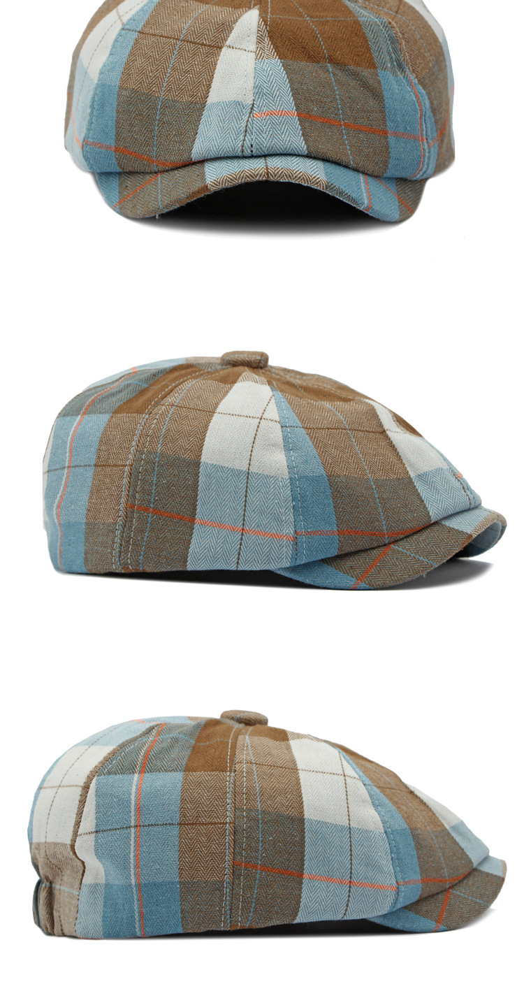 Estilo coreano moda Plaid octogonal sombrero hombres y mujeres primavera y verano boina delgada británico retro newsboy sombrero pintor sombrero