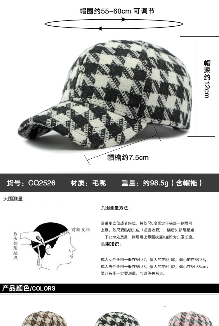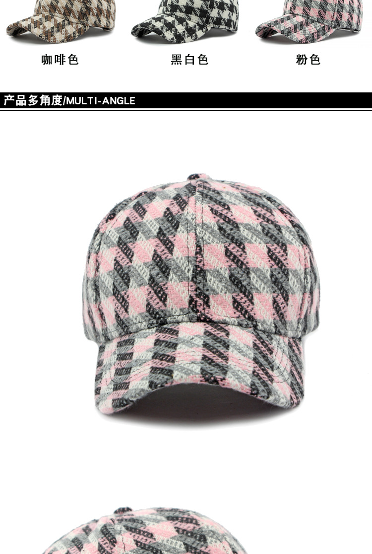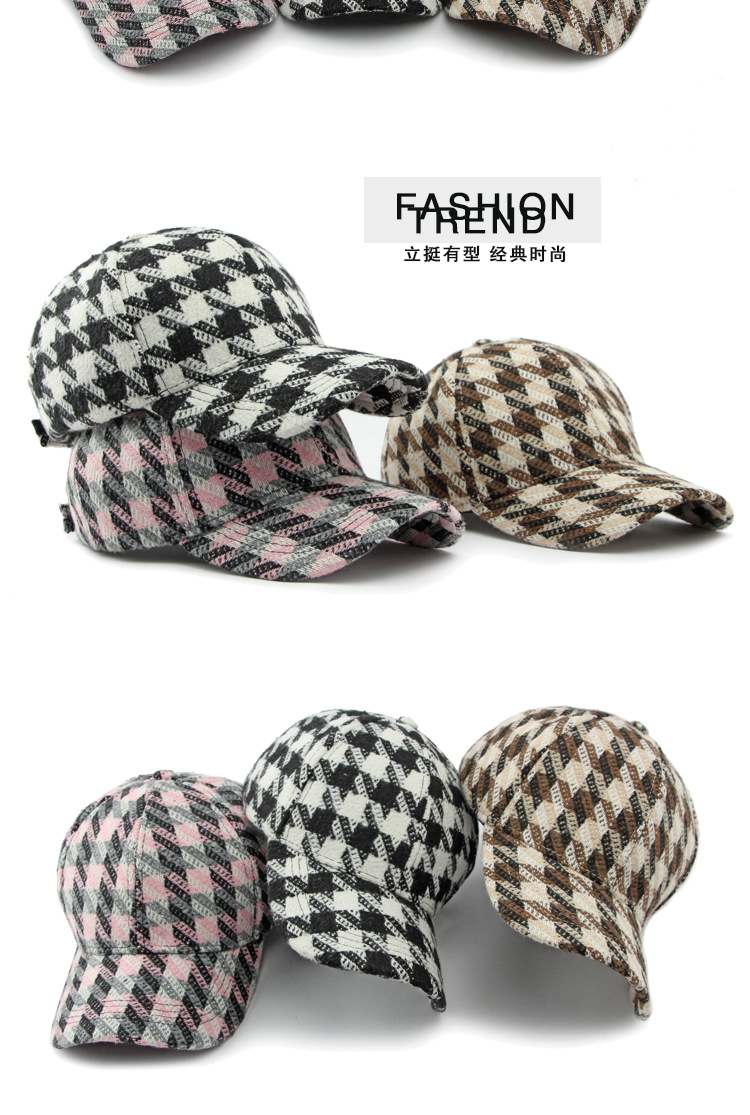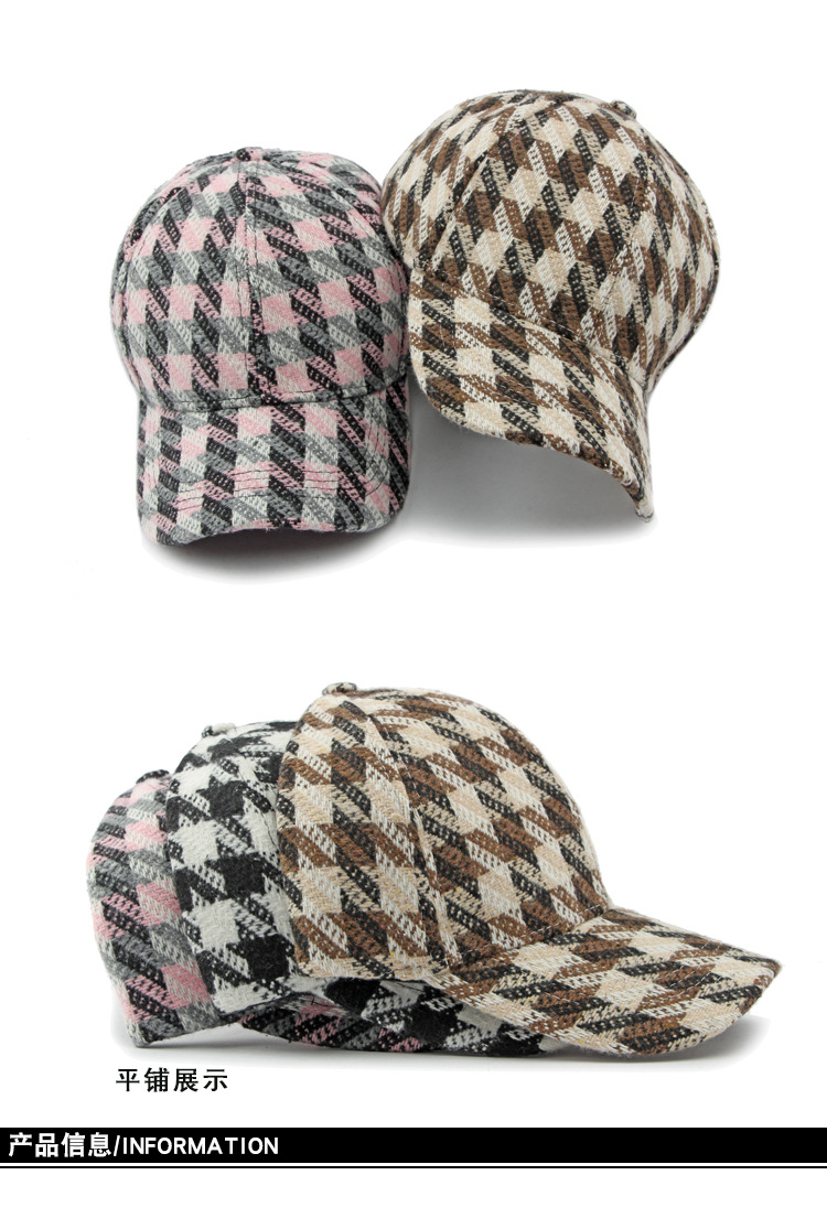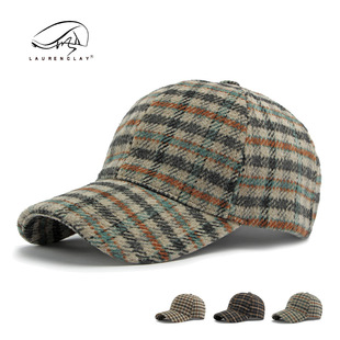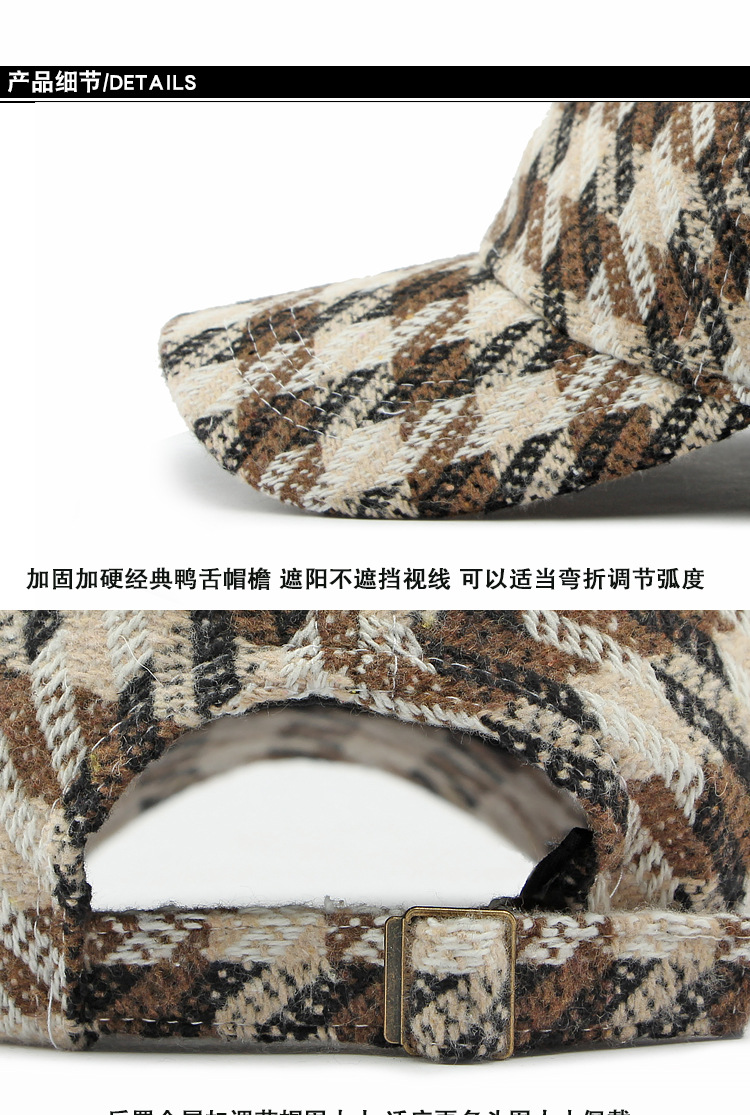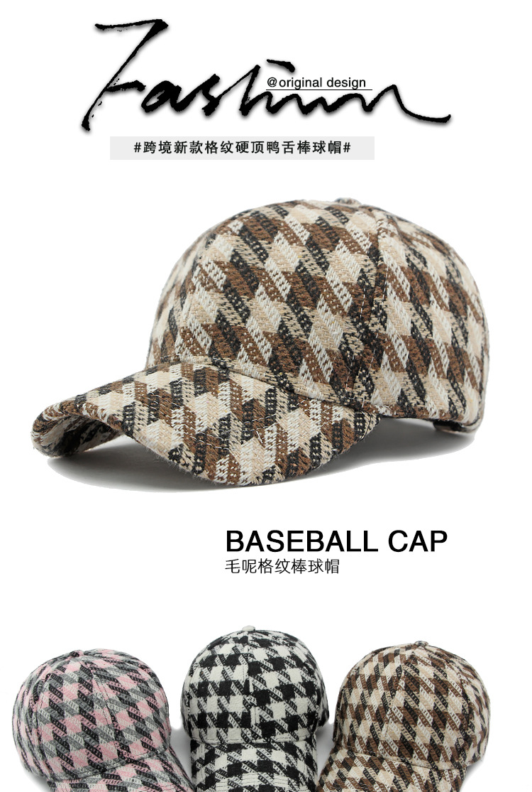 Sombrero de estilo coreano para hombres y mujeres otoño e invierno Nueva gorra de béisbol de tapa dura a cuadros lana retro gorra de pico protección solar sombrero de sol moda