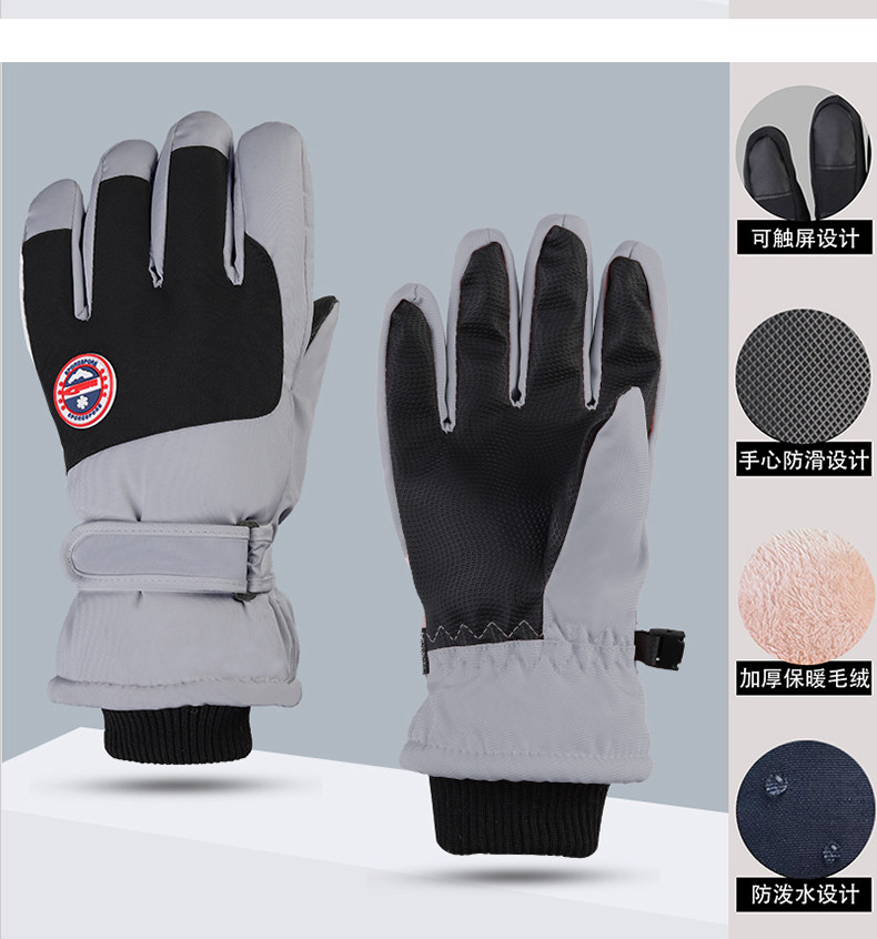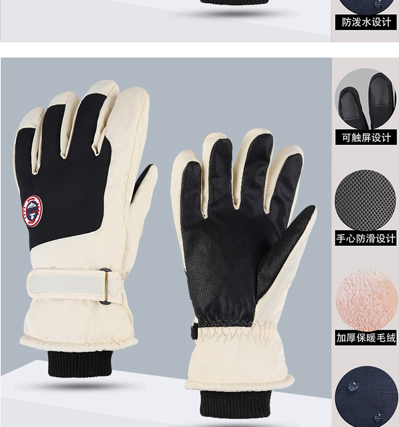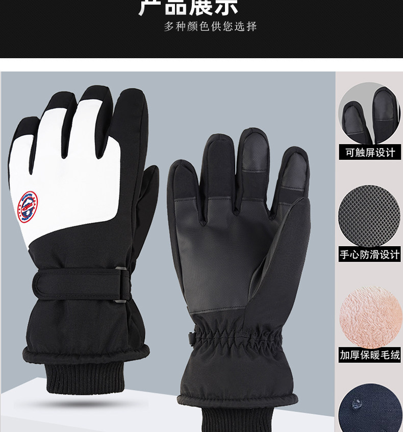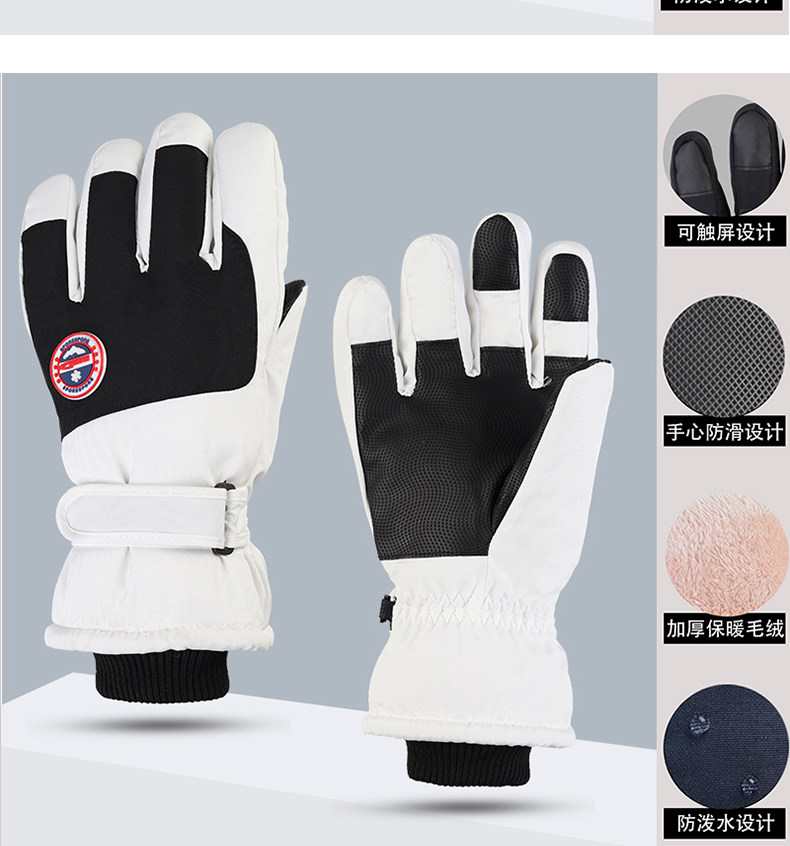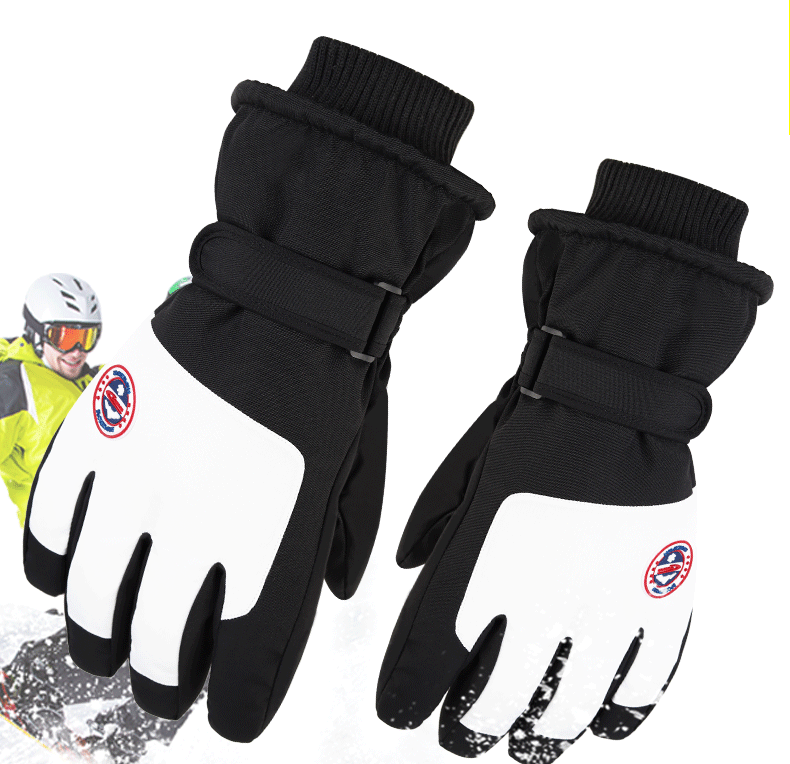 Hombres y mujeres niños adultos invierno blanco caliente esquí impermeable antideslizante pantalla táctil de vello guantes de bicicleta eléctrica invierno