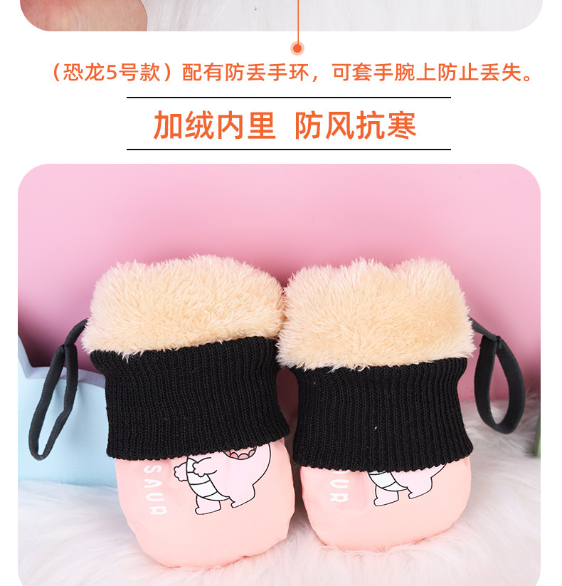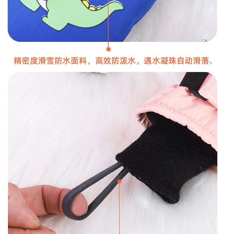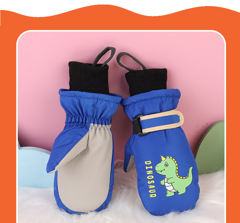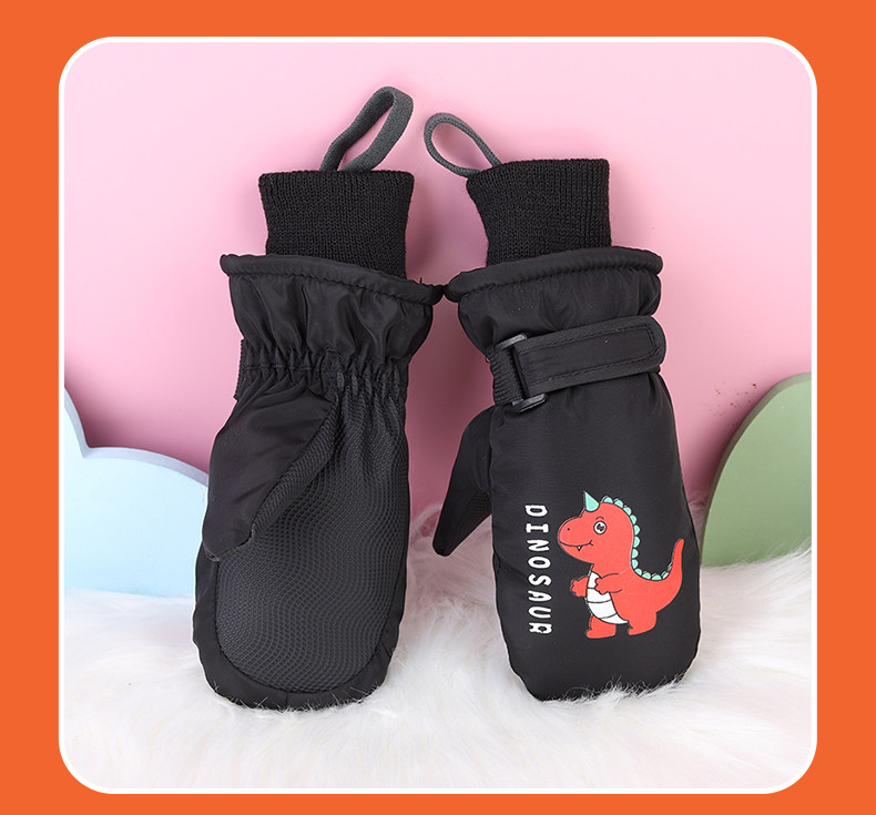 Invierno niños juegan nieve impermeable, calentamiento y espessado y dedos para esquiar dibujos animados dinosaurios guantes antideslizantes lindos