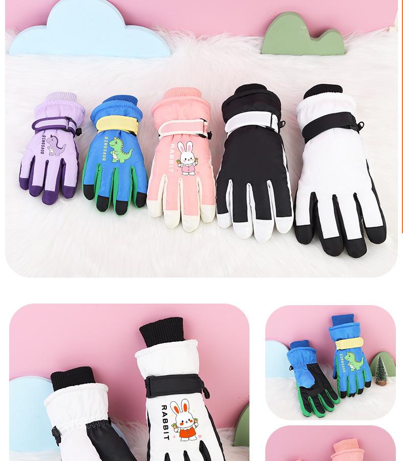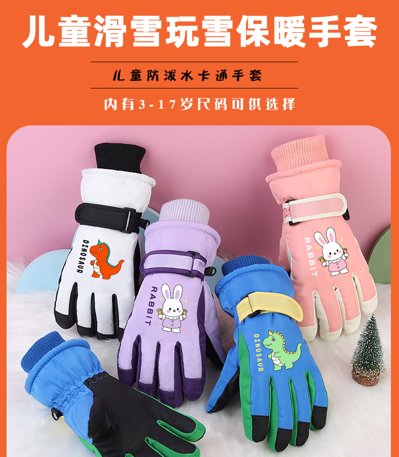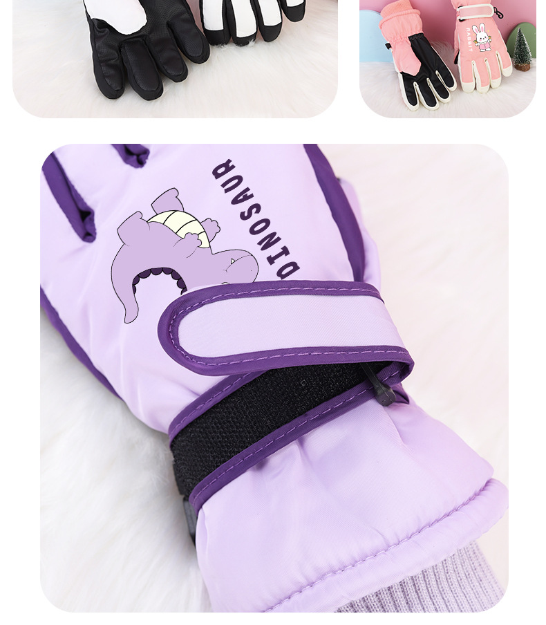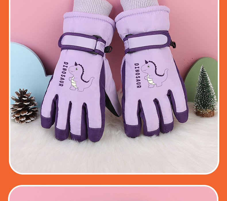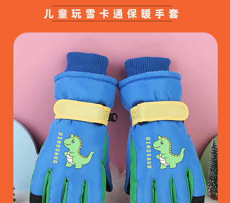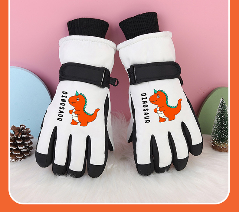 Niños con pantalla táctil invierno 3 - 12 años de edad grueso impermeable a prueba de viento antideslizante calentamiento de esquí para jugar con nieve guantes de dinosaurio de terciopelo