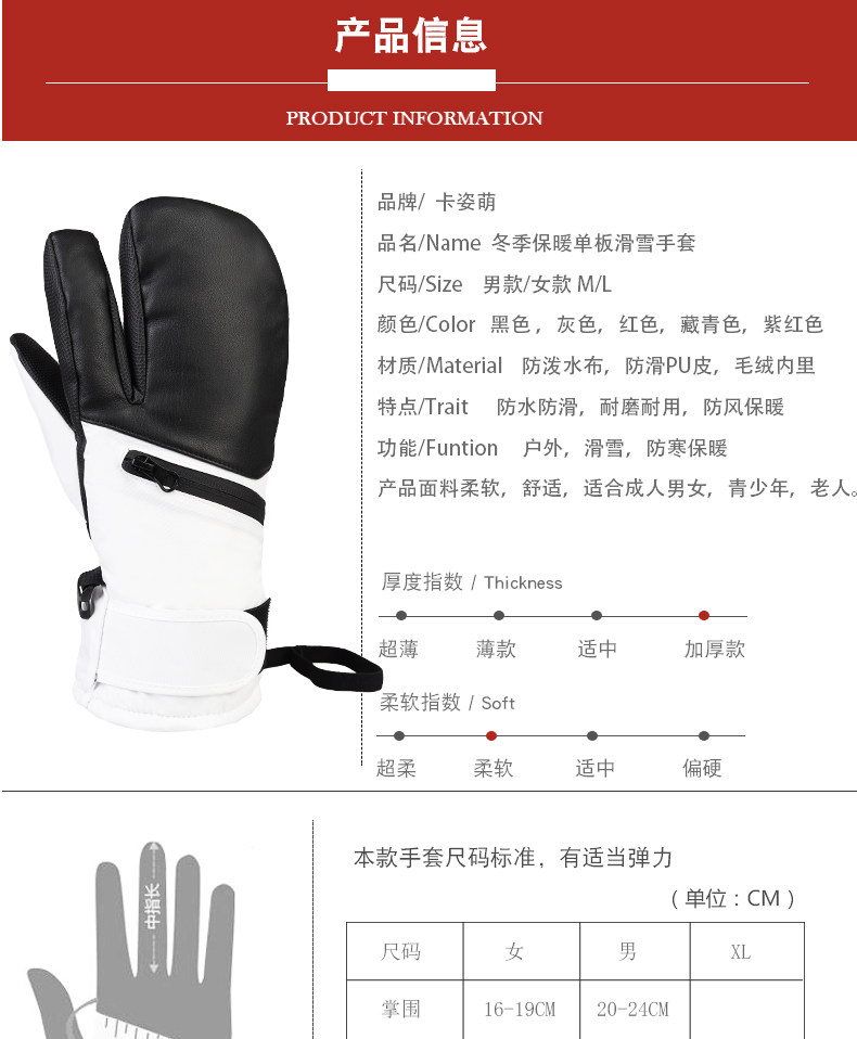Invierno con bolsa impermeable, hombre y mujer, esquí de monopatín de invierno, calor, desgaste, ciclismo antideslizante, viento, frío, impermeable y guante de dedo