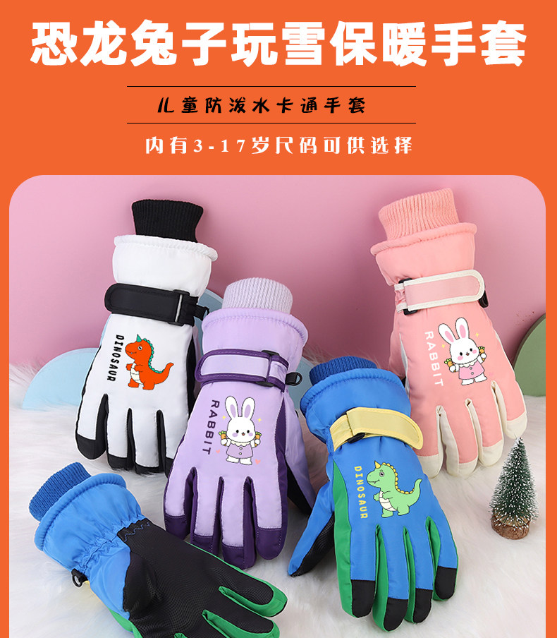 3-12 Guantes de algodón para niños a prueba de frío a prueba de agua a prueba de viento antideslizante de esquí caliente para jugar con algodón de nieve en invierno