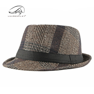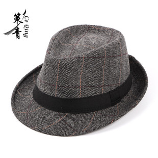 Otoño e Invierno nuevo británico retro Plaid Top Hat hombres de mediana edad y ancianos de lana Caballero sombrero Jazz sombrero al por mayor