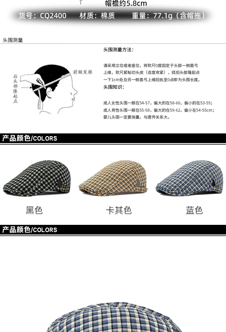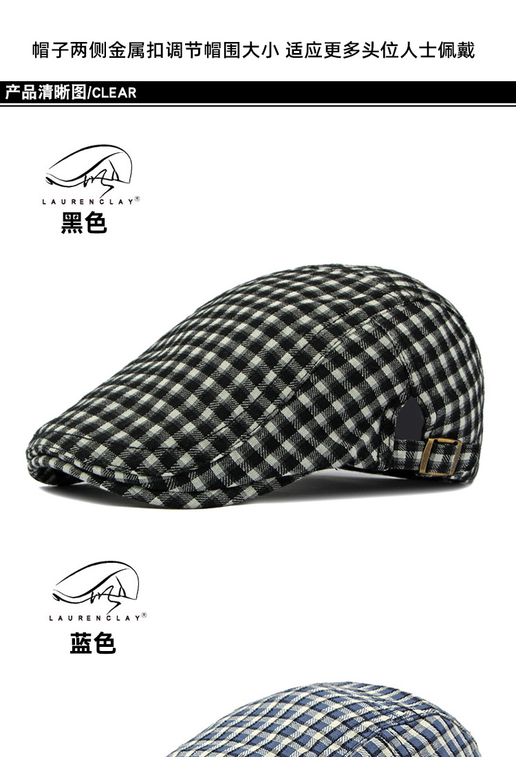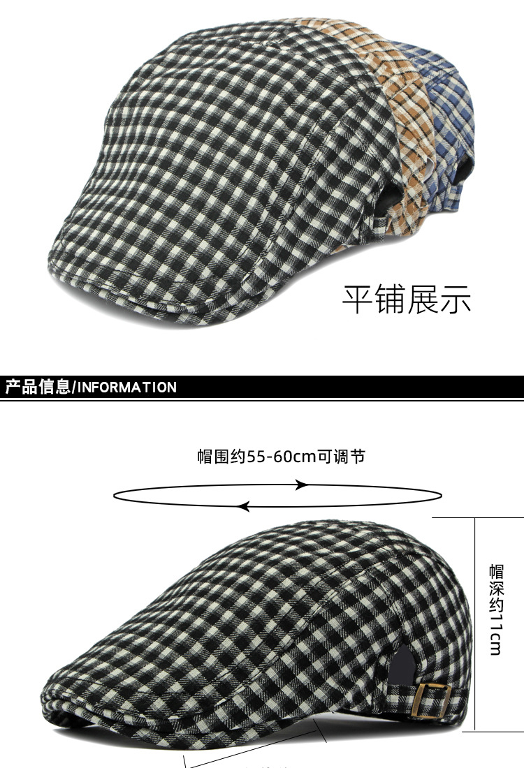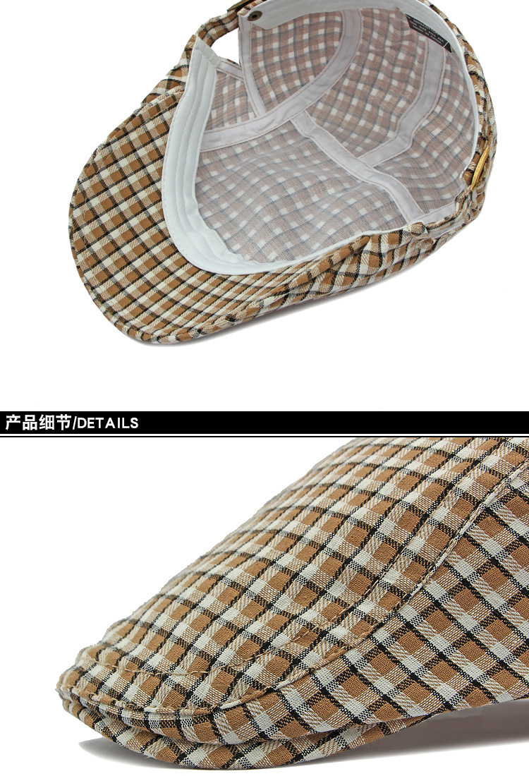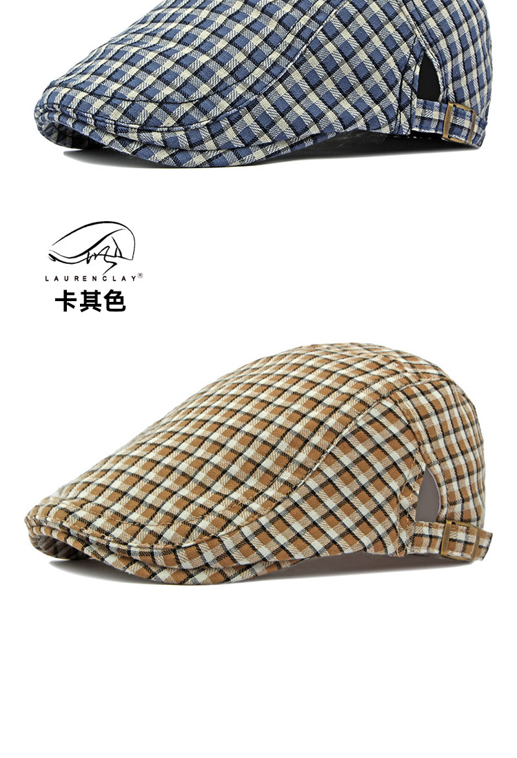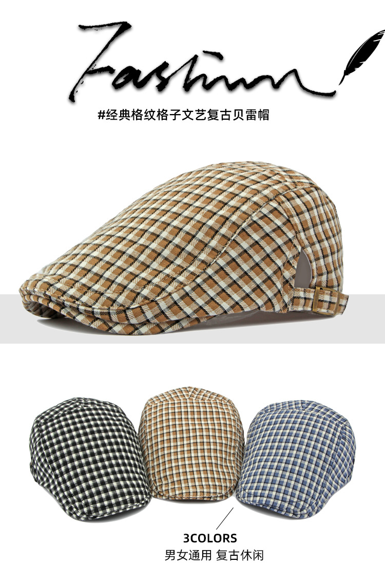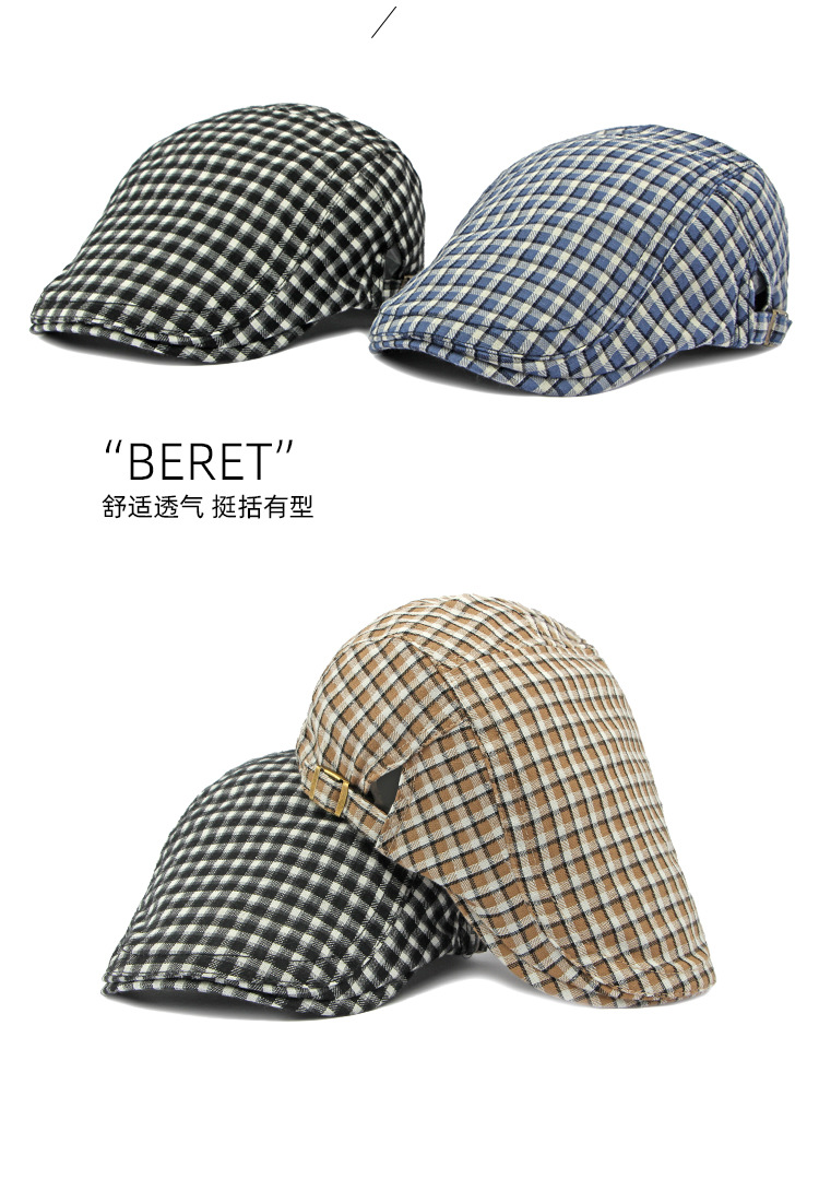 Japonés retro Plaid sombrero delantero de primavera y verano Delgado transpirable boina enarbolada hombres británico retro pintor sombrero
