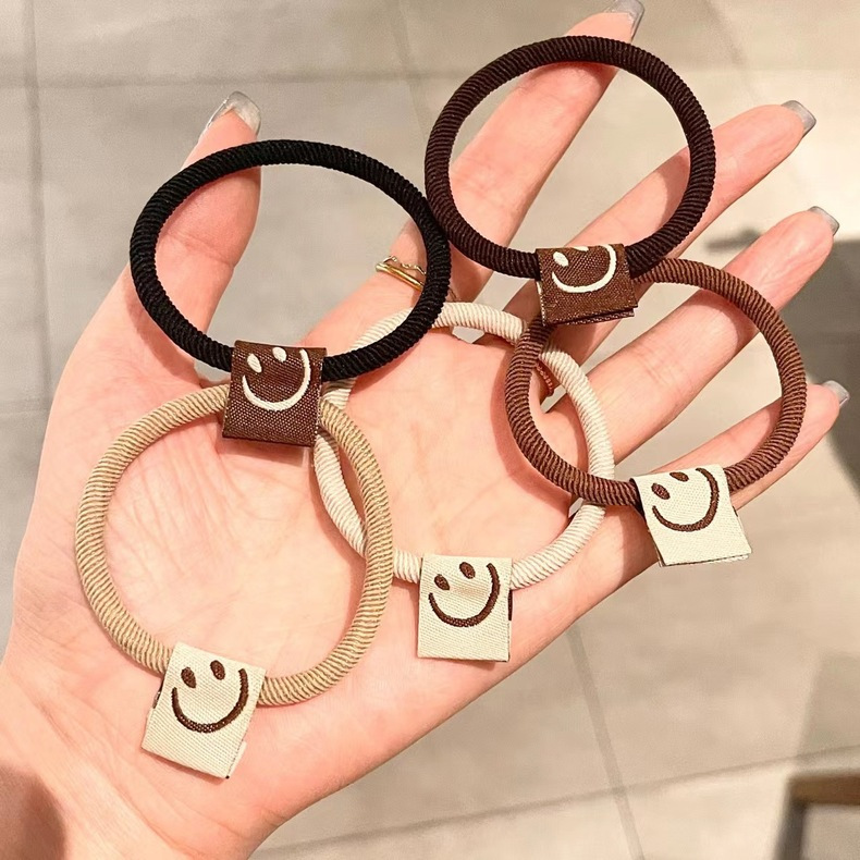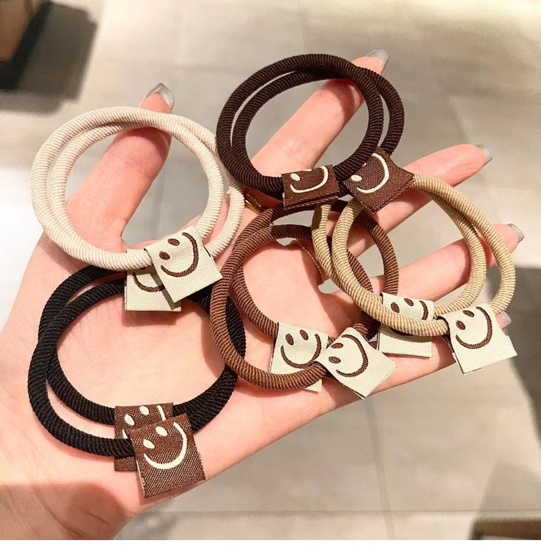 Serie marrón de alta elástica cara sonriente banda de pelo cuerda de pelo banda de pelo de las mujeres ins accesorios para el cabello de alta apariencia cuerda de pelo al por mayor