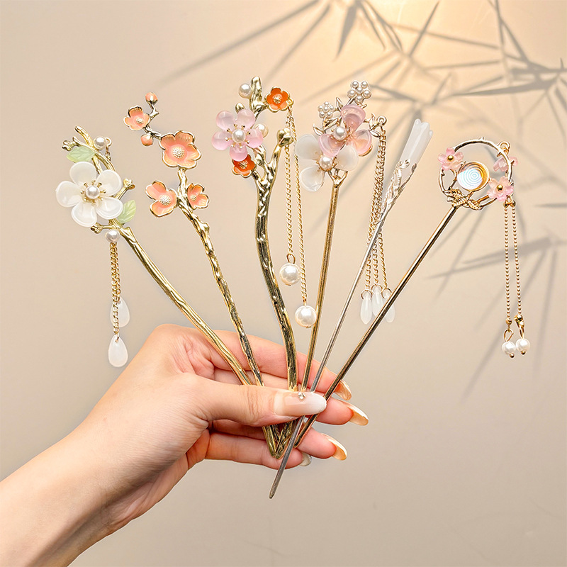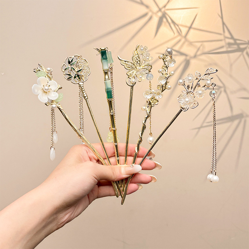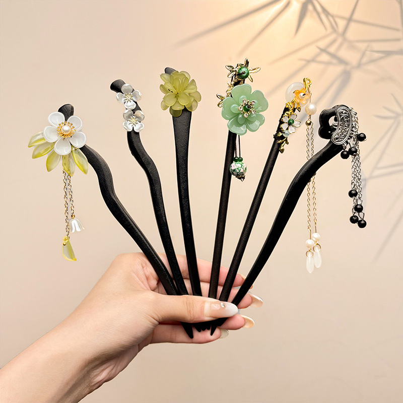 Nueva horquilla china 2025 nuevo estilo estilo antiguo horquilla mujer falda de cara de caballo de alta calidad estilo nacional horquilla de madera paso a paso horquilla tocado