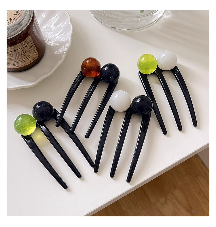Horquilla en forma de U con cuentas de tres dientes de sentido avanzado Horquilla de cabeza de bola de viaje diario Horquilla de disco en la parte posterior de la cabeza Horquilla fija