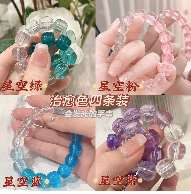 Luminoso cielo estrellado pulsera estudiante descompresión placa juego gradiente color bobinado suave cuentas pareja pulsera al por mayor