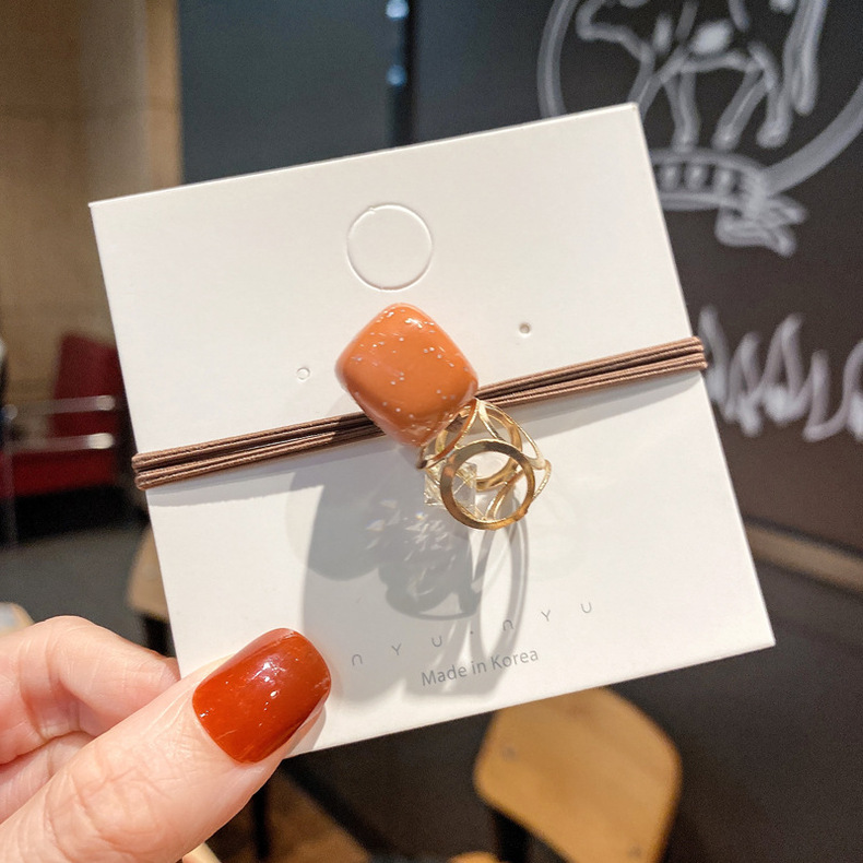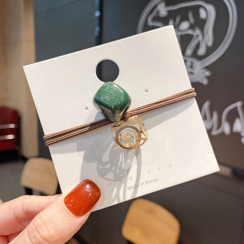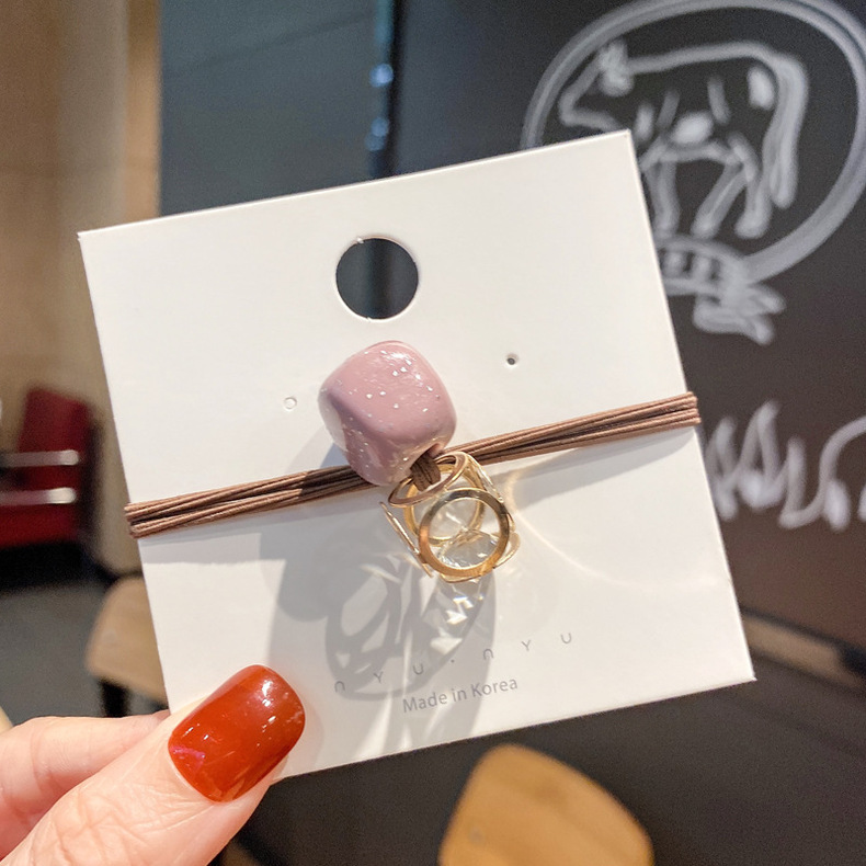 Aleación de estilo coreano hueco cuadrado rhinestone banda de pelo cabeza de bola pequeña banda de goma cuerda de pelo accesorios de cabello de alta elasticidad cuerda de pelo para las mujeres al por mayor