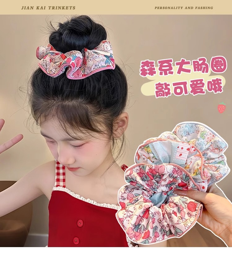 Lindo lazo para el cabello del intestino grueso floral para niños, niña no lastima el cabello, cuerda para la cabeza, cuerda para la cabeza, niña, banda elástica de cola de caballo alta