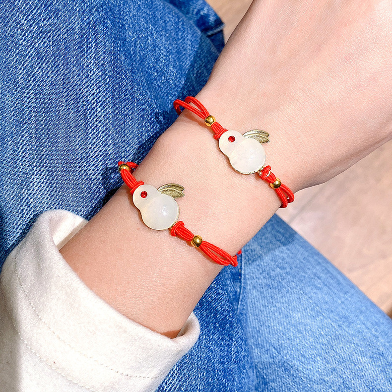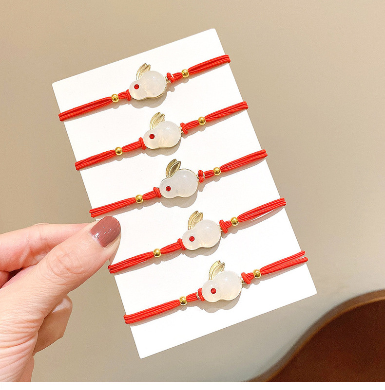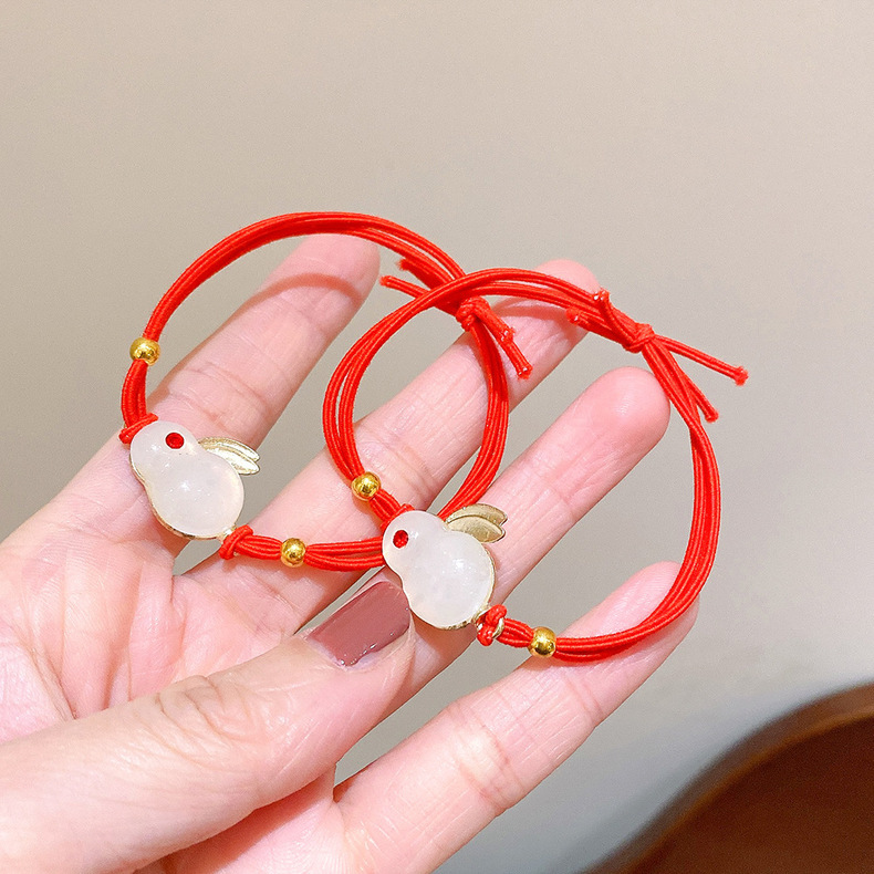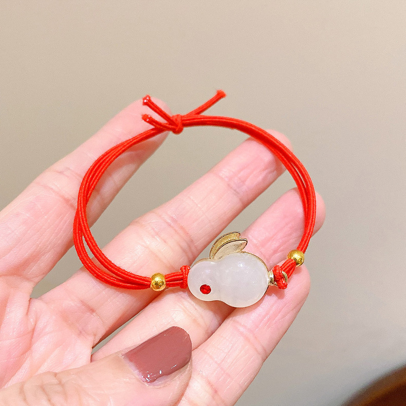 Año nuevo pelo rojo cuerda animal año conejo pelo banda accesorios para el pelo al por mayor pelo pulsera de doble uso pequeña banda de goma