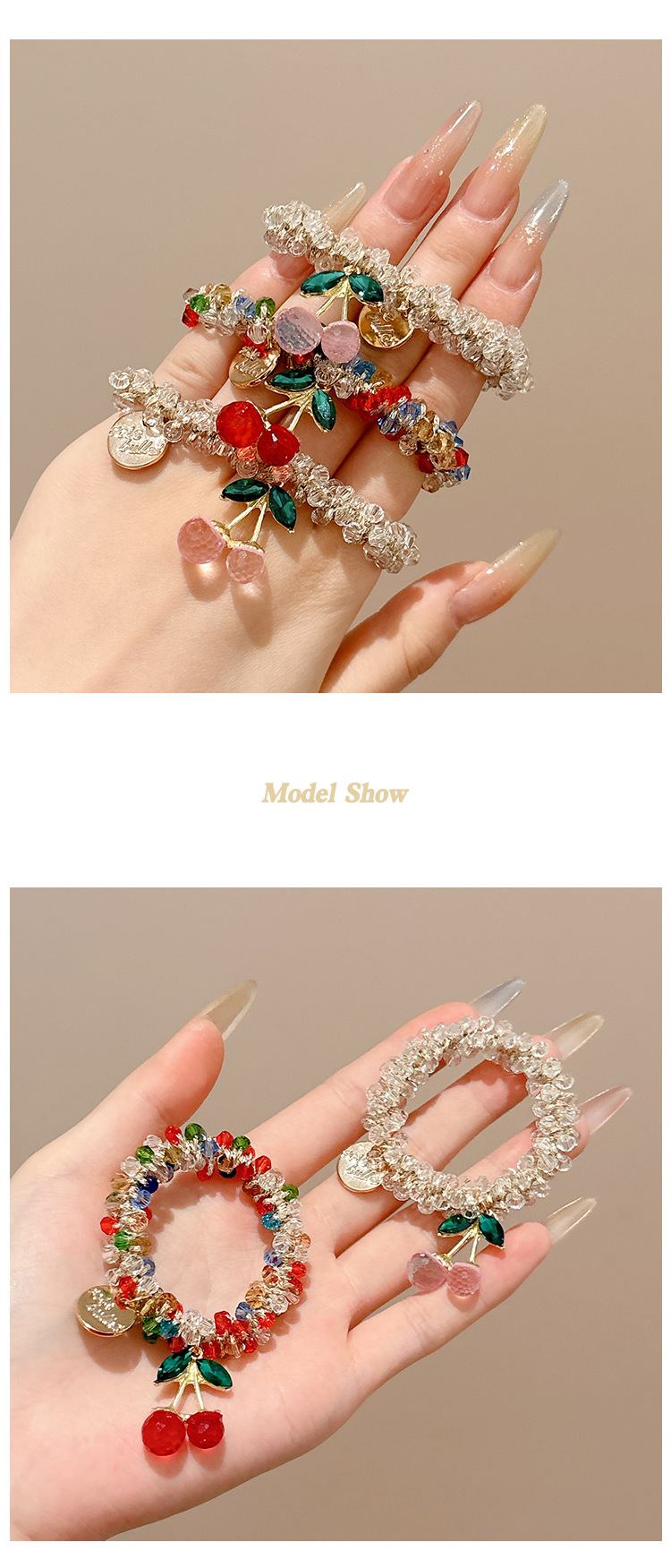 Nuevo estilo rojo neto cristal rhinestone cuerda para el cabello mujer enviar novia pulsera personalidad de doble uso cola de caballo baja red sombrero simple