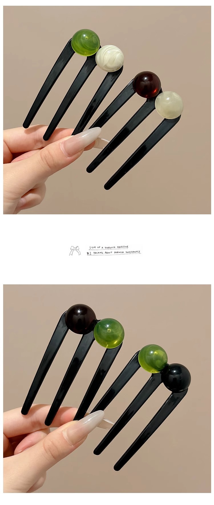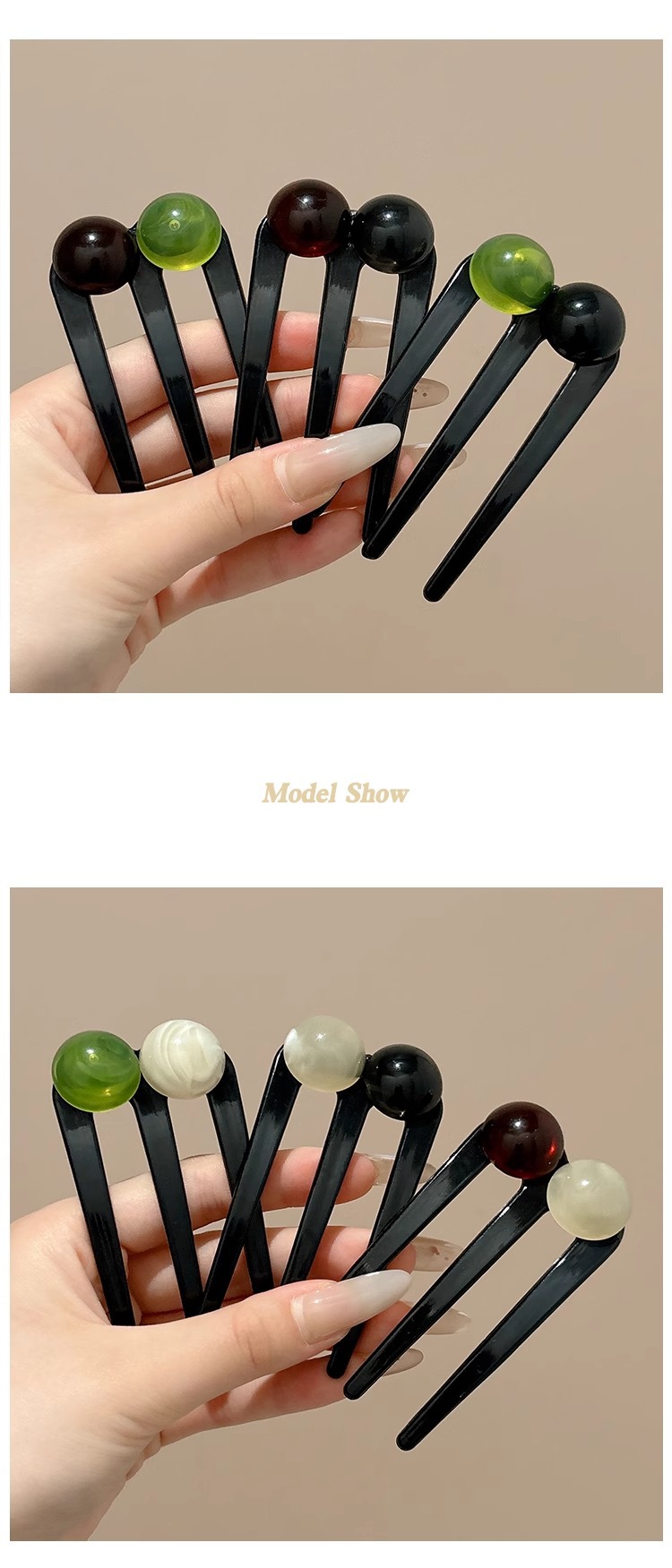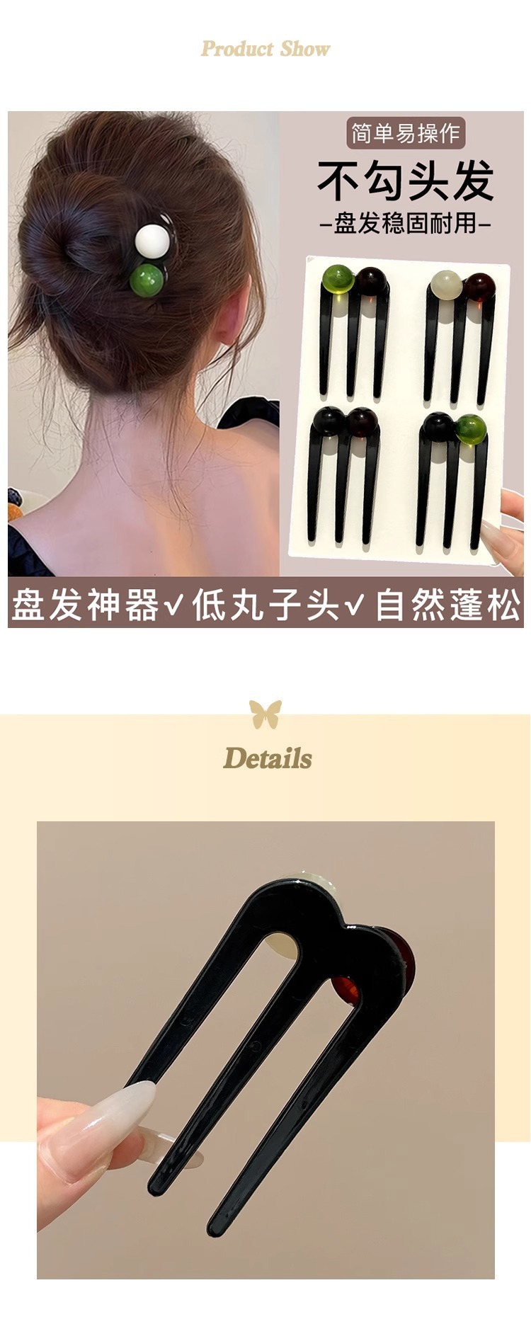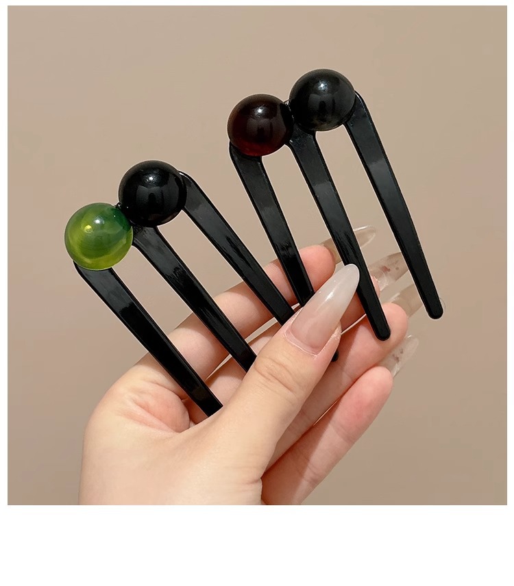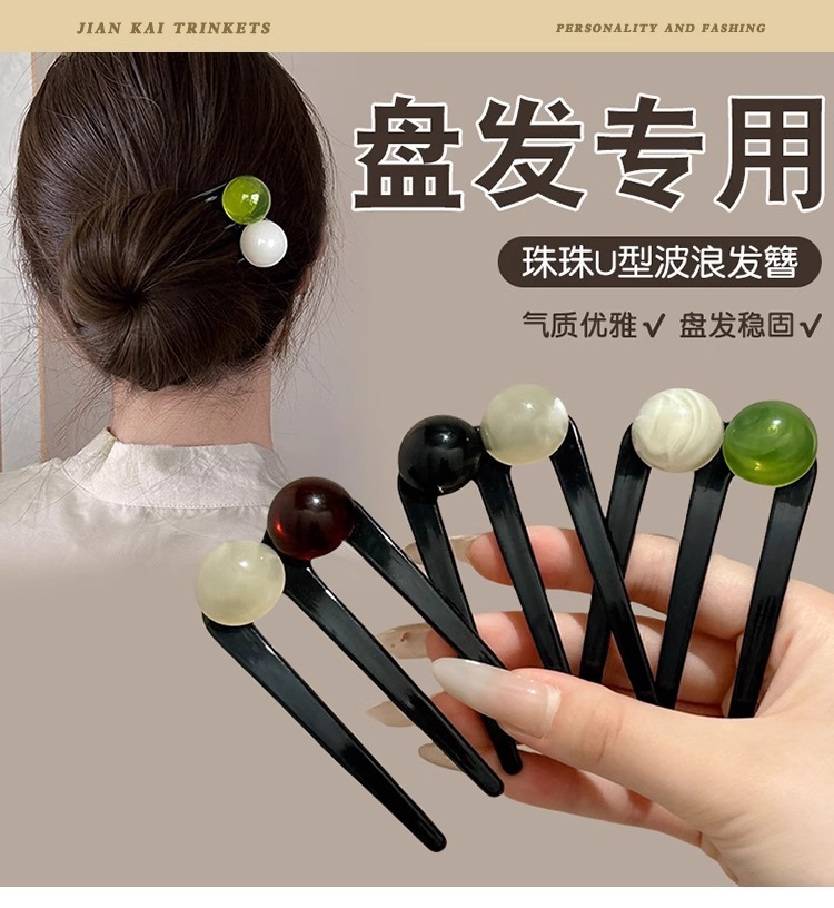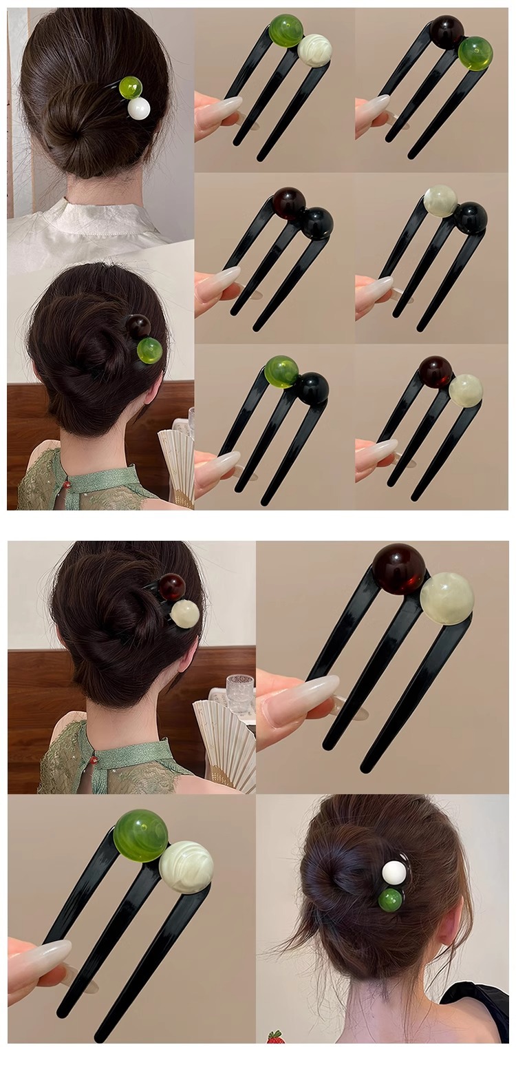 Nueva horquilla de tres dientes con cuentas en forma de U de estilo chino