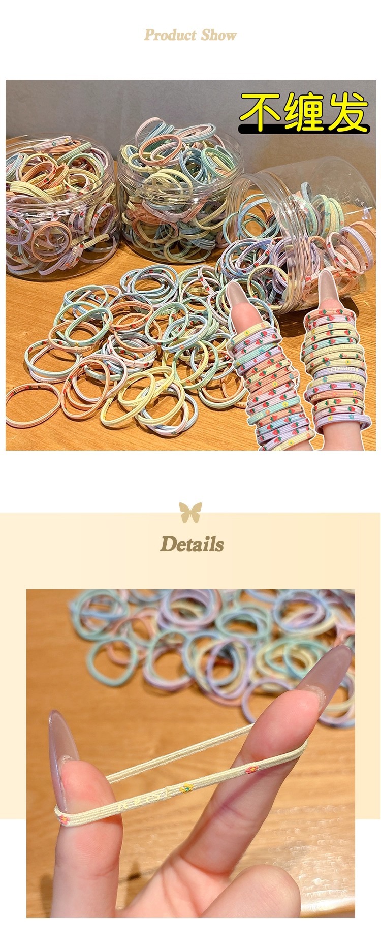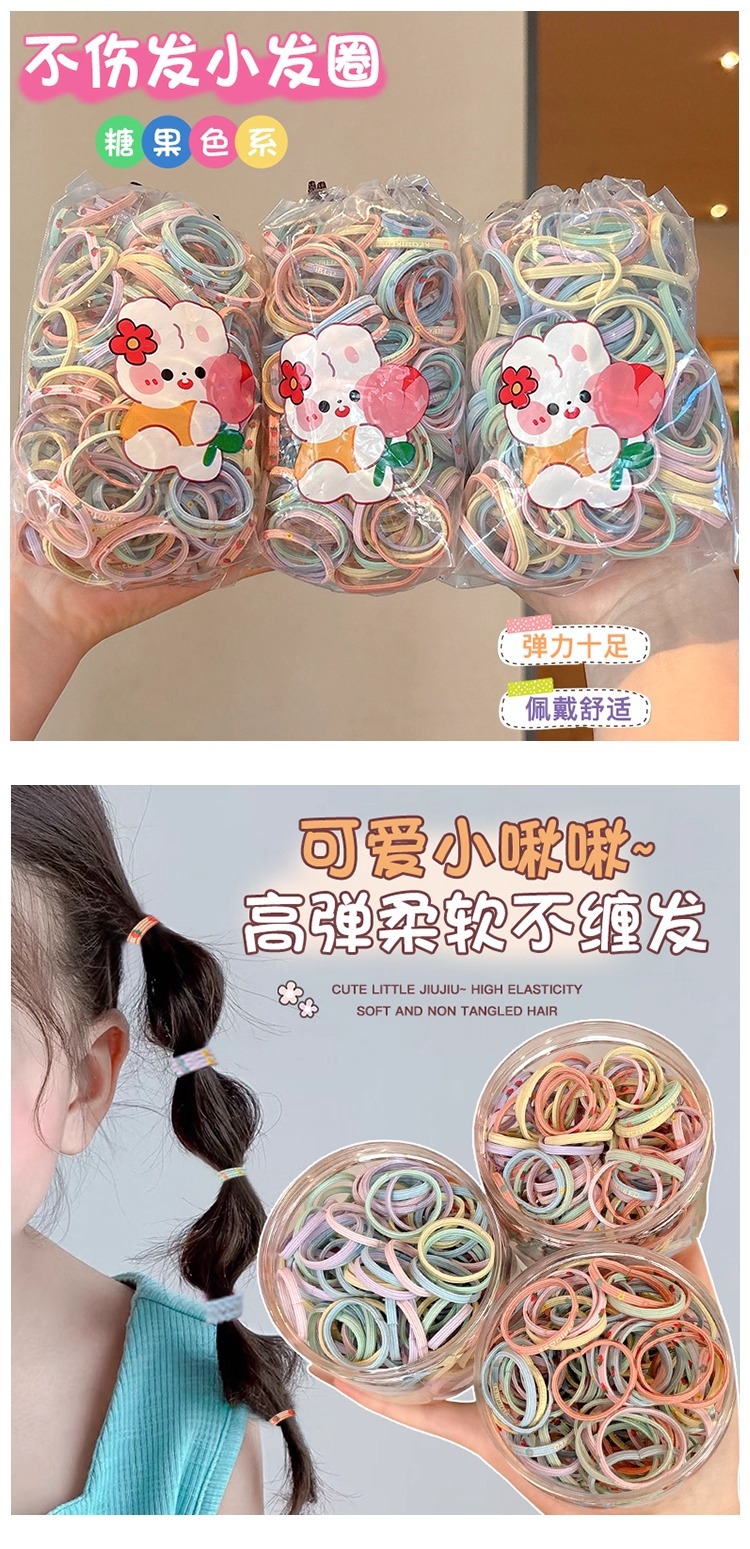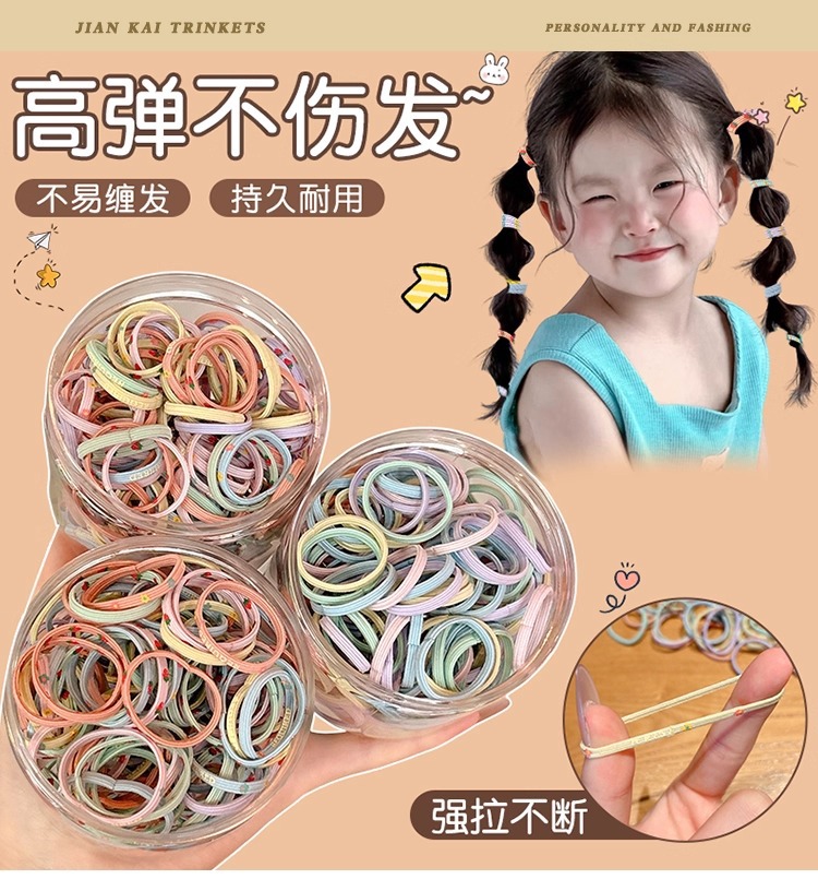 El volumen de cabello del bebé es pequeño, la cuerda para la cabeza es linda, la banda elástica para el cabello de las niñas no daña la cuerda para el cabello