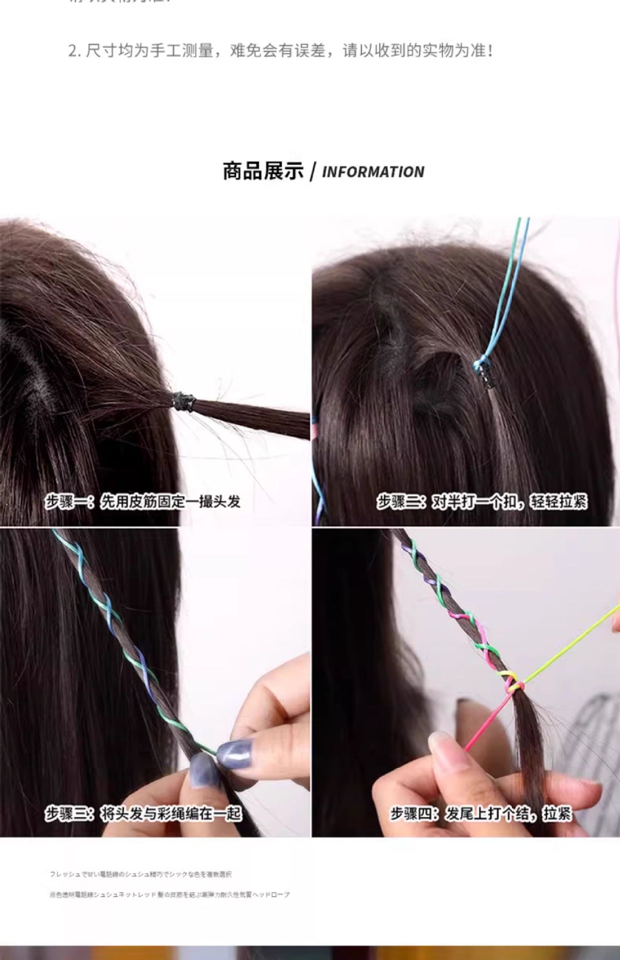 | Colores | 1 #16 cuerdas de gradiente finas,4 #20 cuerdas gradientes gruesas,12 #20 tiras de arena de colores,11 #30 colores mezclados planos finos,3 #32 cuerdas de gradiente finas,10 #18 colores mezclados planos finos,2 #24 cuerdas de gradiente finas,8 #20 fantasía metálica,16 # Colorido 16 raíces,5 #30 cuerdas gradientes gruesas,17 #16 rosa,9 #30 fantasmas metálicos,7 #30 cintas de colores,6 # cinta de color 20 raíces,9 # plata colorida-alrededor de 100 piezas,15 # cinturón de arena de color,7 # color mixto-alrededor de 100 raíces,3 # rosa colorido-alrededor de 100 piezas,13 #30 tiras de arena de colores,14 #18 colores gruesos,4 # Colorful Sky Blue-alrededor de 100 raíces |
