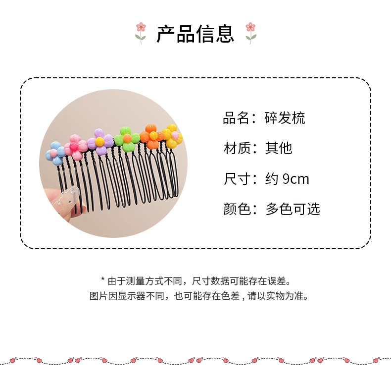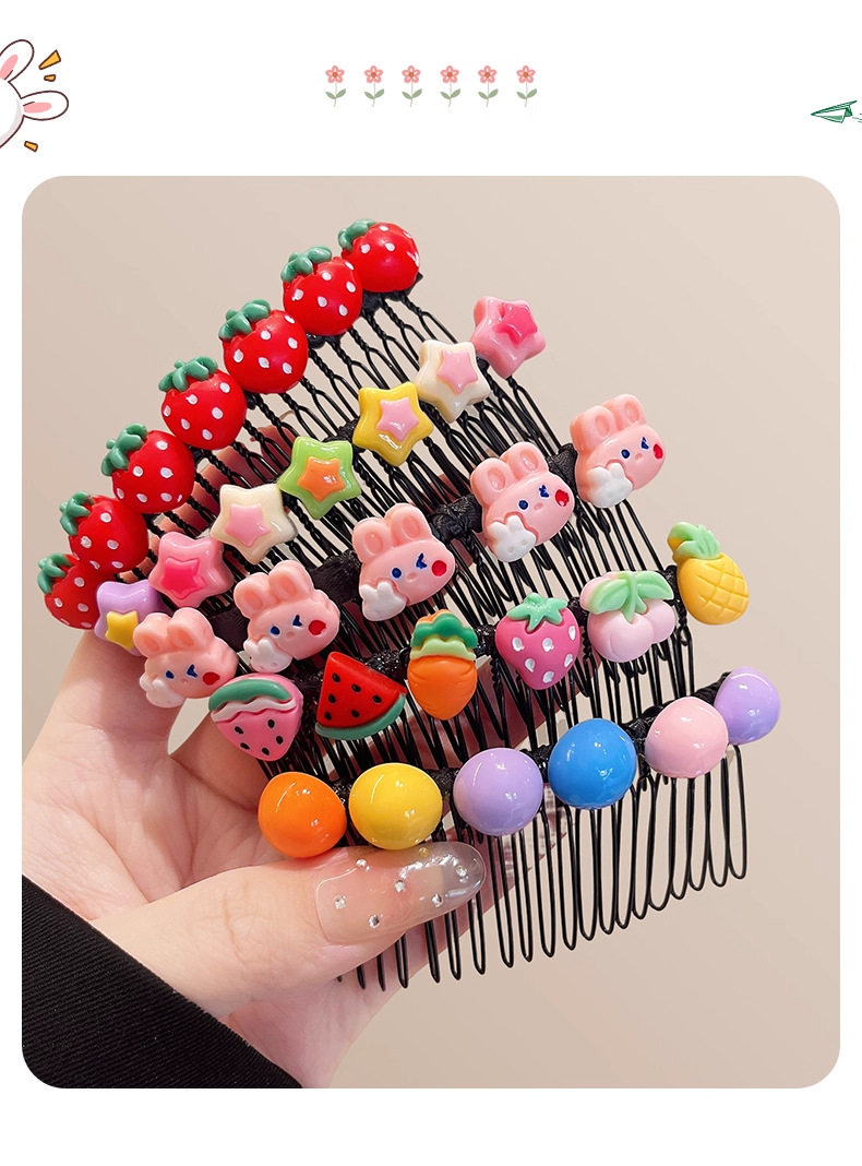 | Colores | 2 # peine de estrella de color-aproximadamente 7,5 cm,3 # peine de bola de color-aproximadamente 7,5 cm,1 # Peine de inserción de frutas-aproximadamente 7.5cm,4 # peine de flores de color-aproximadamente 7.5cm,5 # peine de conejo de color-aproximadamente 7,5 cm,6 # peine de fresa-aproximadamente 7.5cm,8 # Cinco conejos,9 # Ocho amor,11 # Flores de colores,10 # Fresa,2 # zanahoria fresa piña,4 # bola de seis colores,7 # Siete estrellas de cinco puntas,66 #6 frutas,4 # amor de color unos 12cm,2 # caramelo de color de gelatina alrededor de 12cm,1 # estrella de cinco puntas de color de gelatina alrededor de 12cm,5 # fresas aprox. 12cm,3 # estrella de cinco puntas de color de unos 12cm,10 # estrellas de color café de unos 12cm,7 # Amor colorido de unos 12cm,8 # arco iris alrededor de 12cm,6 # flores rosadas de unos 12cm,9 # Girasol aprox. 12cm,5 # Estilo de flores de colores (peine de unos 8,5 cm),2 # estilo girasol (aproximadamente 8,5 cm de peine),6 # Estilo de flor púrpura (peine de unos 8,5 cm) |