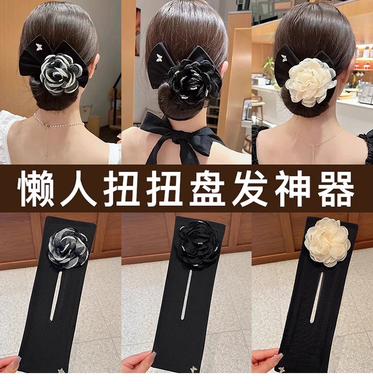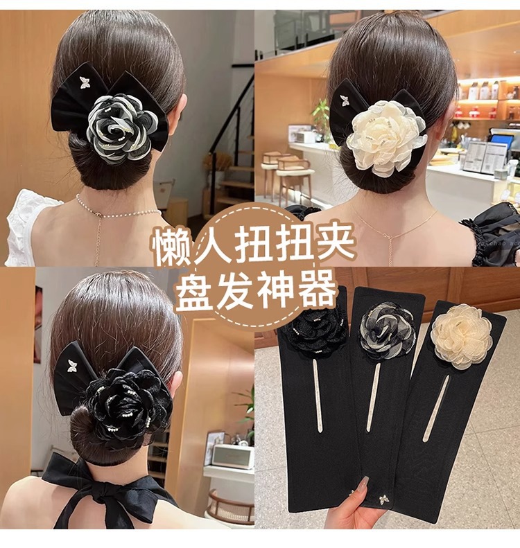 Perezoso torcer placa giratorio artefacto para el cabello con lazo horquilla femenina 2025 nuevo estilo cabeza de capullo accesorios para el cabello cabeza de bola horquilla fija
