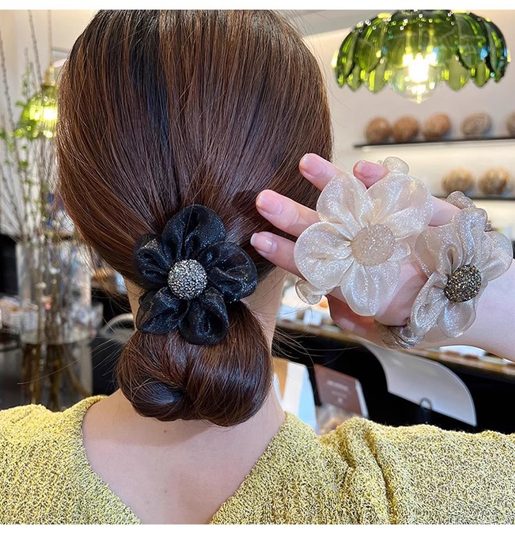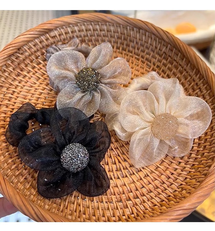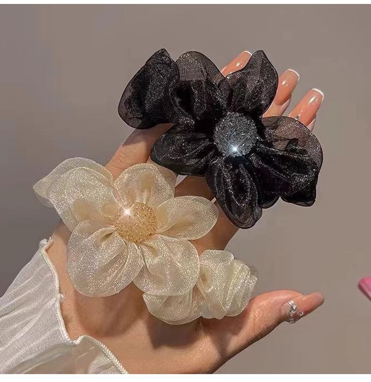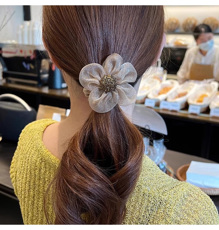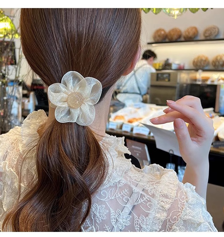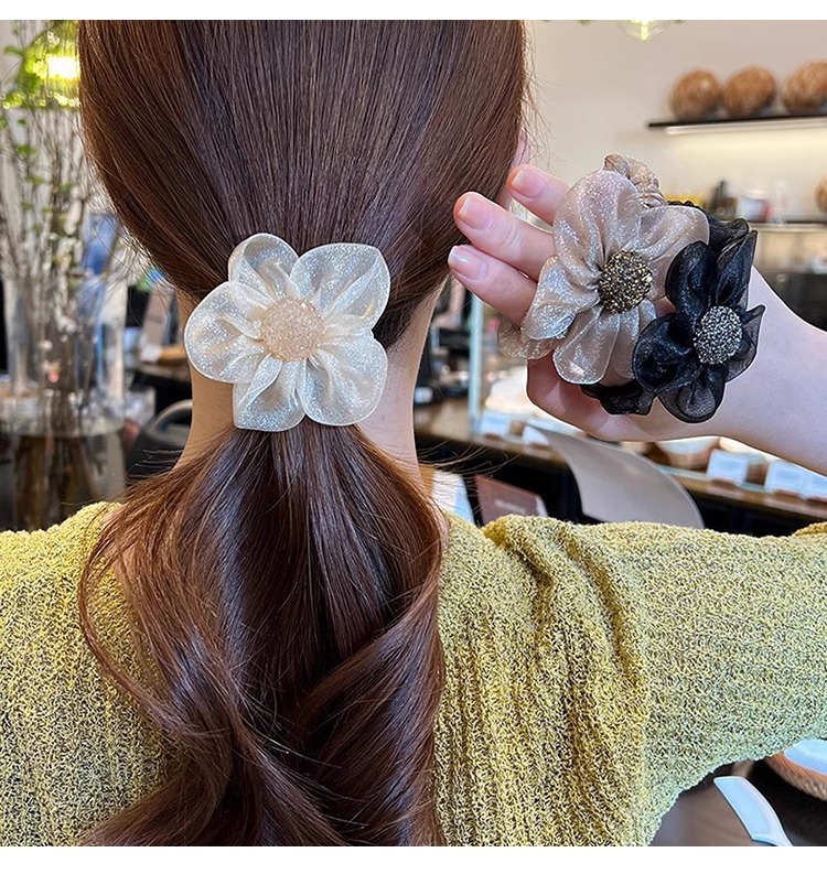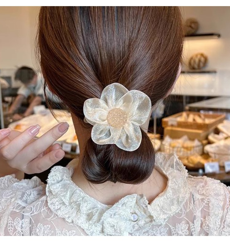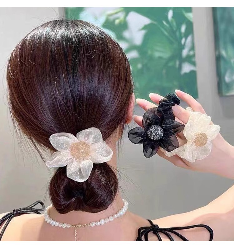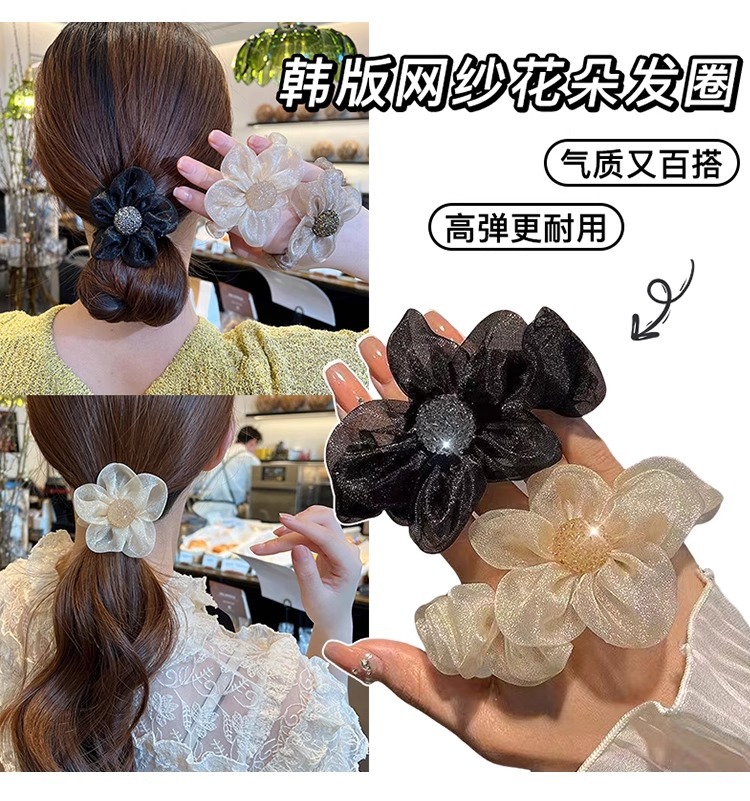 Hilo de malla coreano flor intestino grueso anillo para el cabello femenino 2025 nuevo estilo de alta gama baja cola de caballo cuerda para el cabello cuerda para el cabello accesorios para el cabello