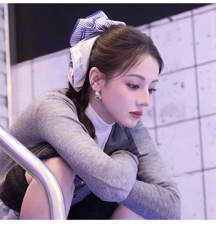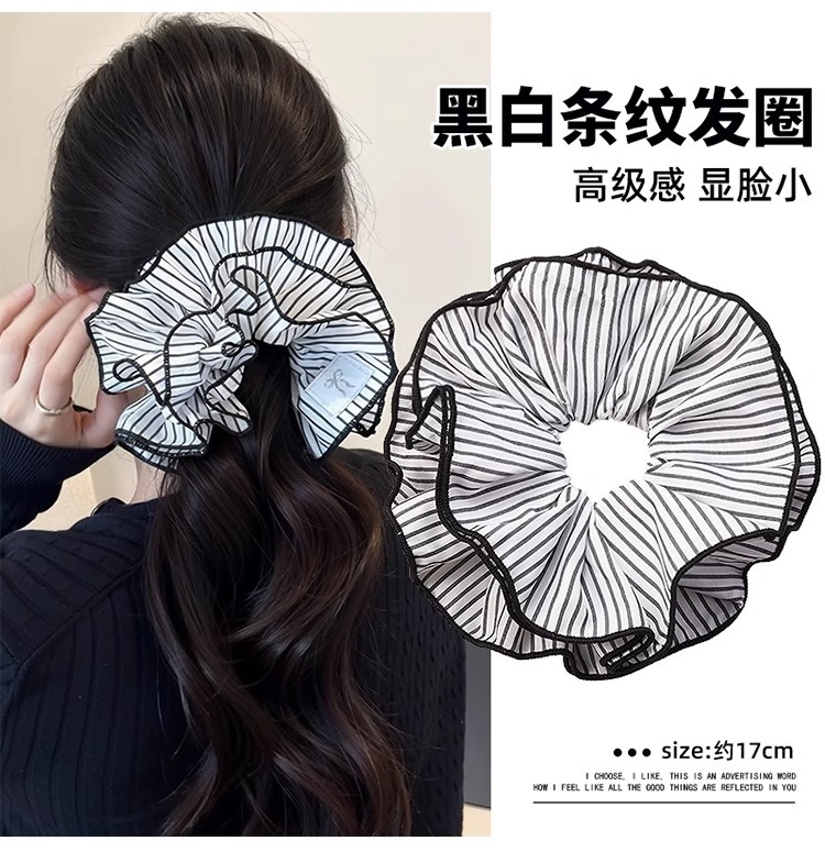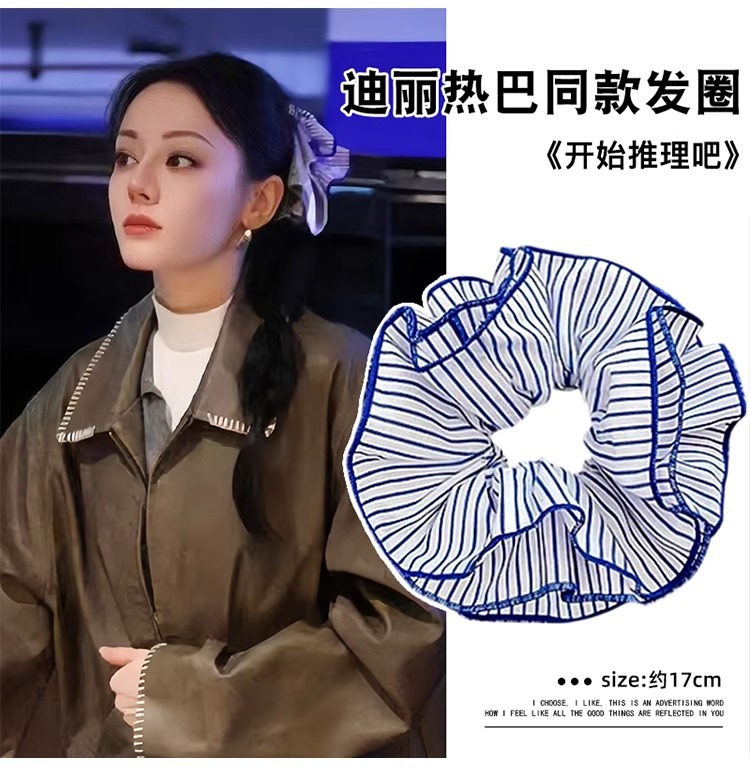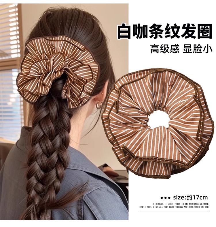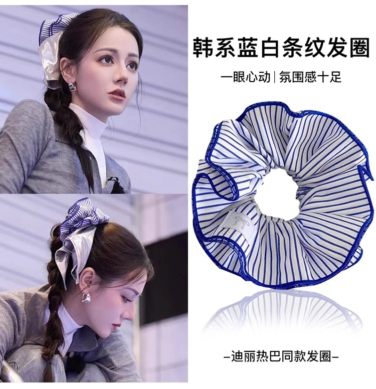 Di Lieba el mismo estilo de lazo para el cabello de intestino grueso para mujer, temperamento de alta gama, cuerda para el cabello a rayas, cuerda para la cabeza de cola de caballo coreana, tocado de goma