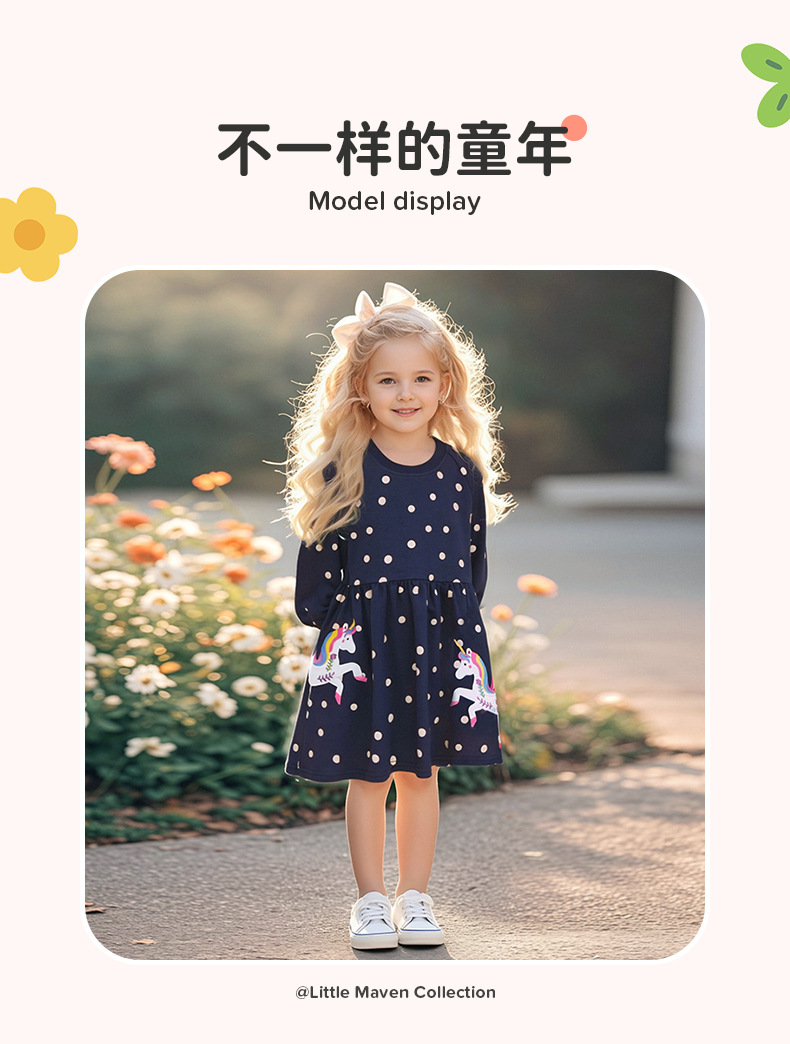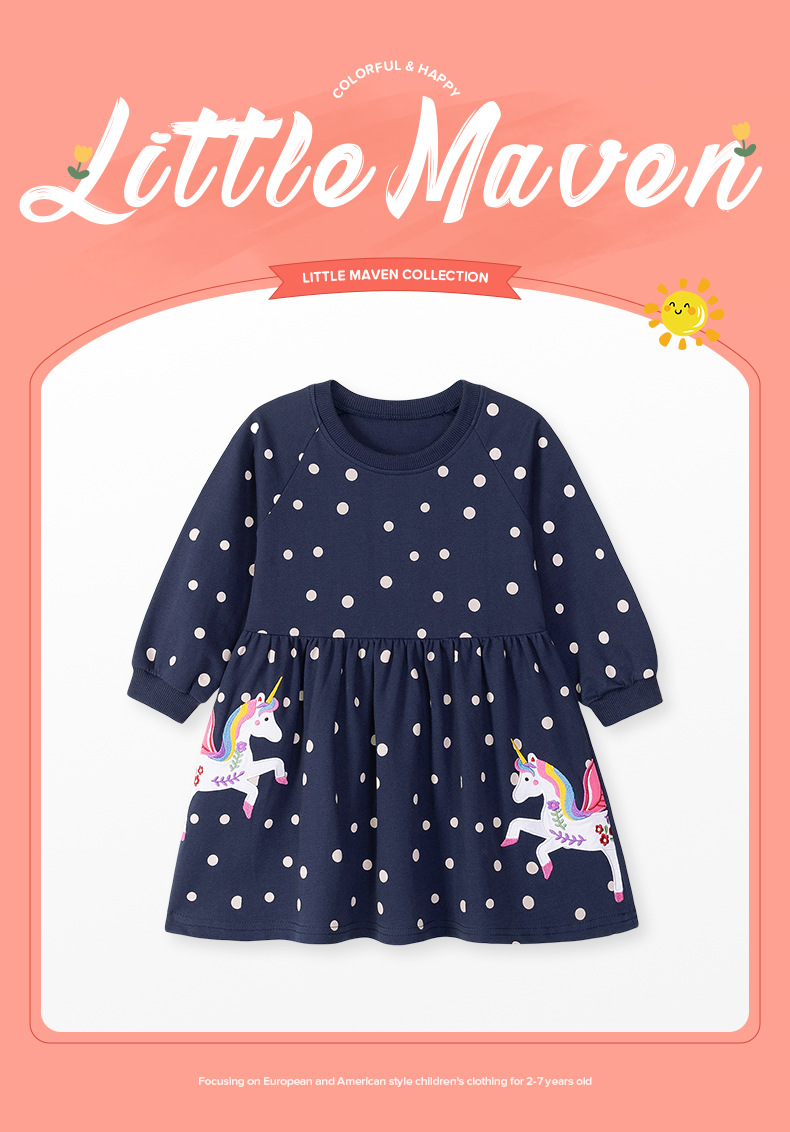 Little maven ropa para niños fábrica falda para niños al por mayor vestido de niña de dibujos animados europeo y americano otoño falda de algodón de manga larga