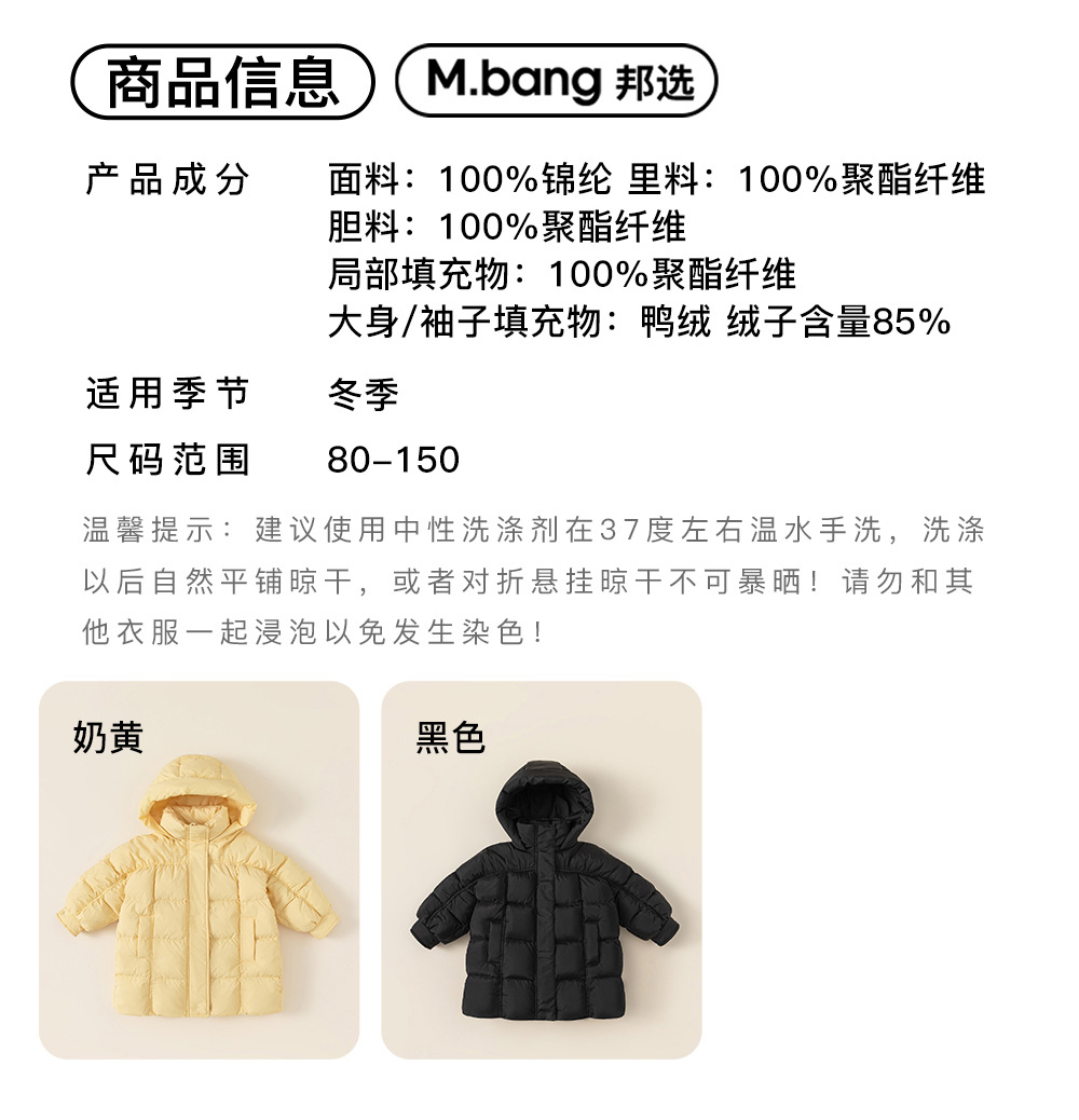 Youbao ropa para niños nueva chaqueta de invierno para bebés tres pruebas 90 terciopelo de pato blanco abrigo con capucha para niños de longitud media