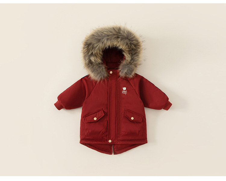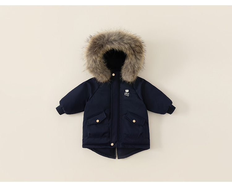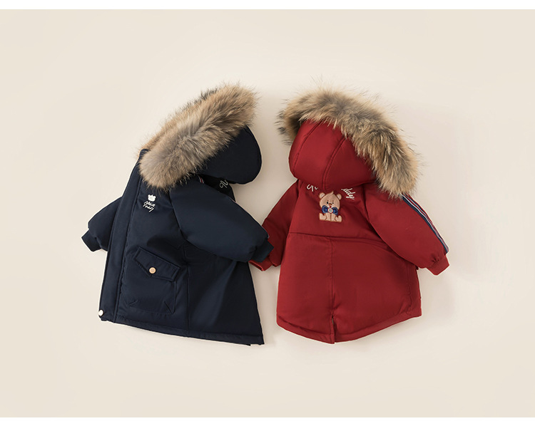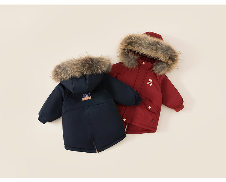 Youbao Ropa Infantil de Invierno, Chaqueta de Plumón de Longitud Media con Capucha para Niños, Estilo Coreano, Cortavientos, Abrigo de Plumón de Pato Blanco para Niños Pequeños