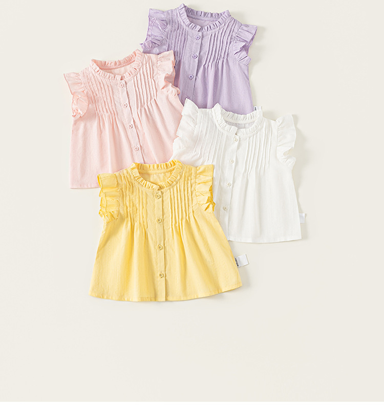 Youbao ropa para niños camisa para niñas verano niña plisada camisa de punto camisa de manga de encaje coreano niños pequeños y medianos
