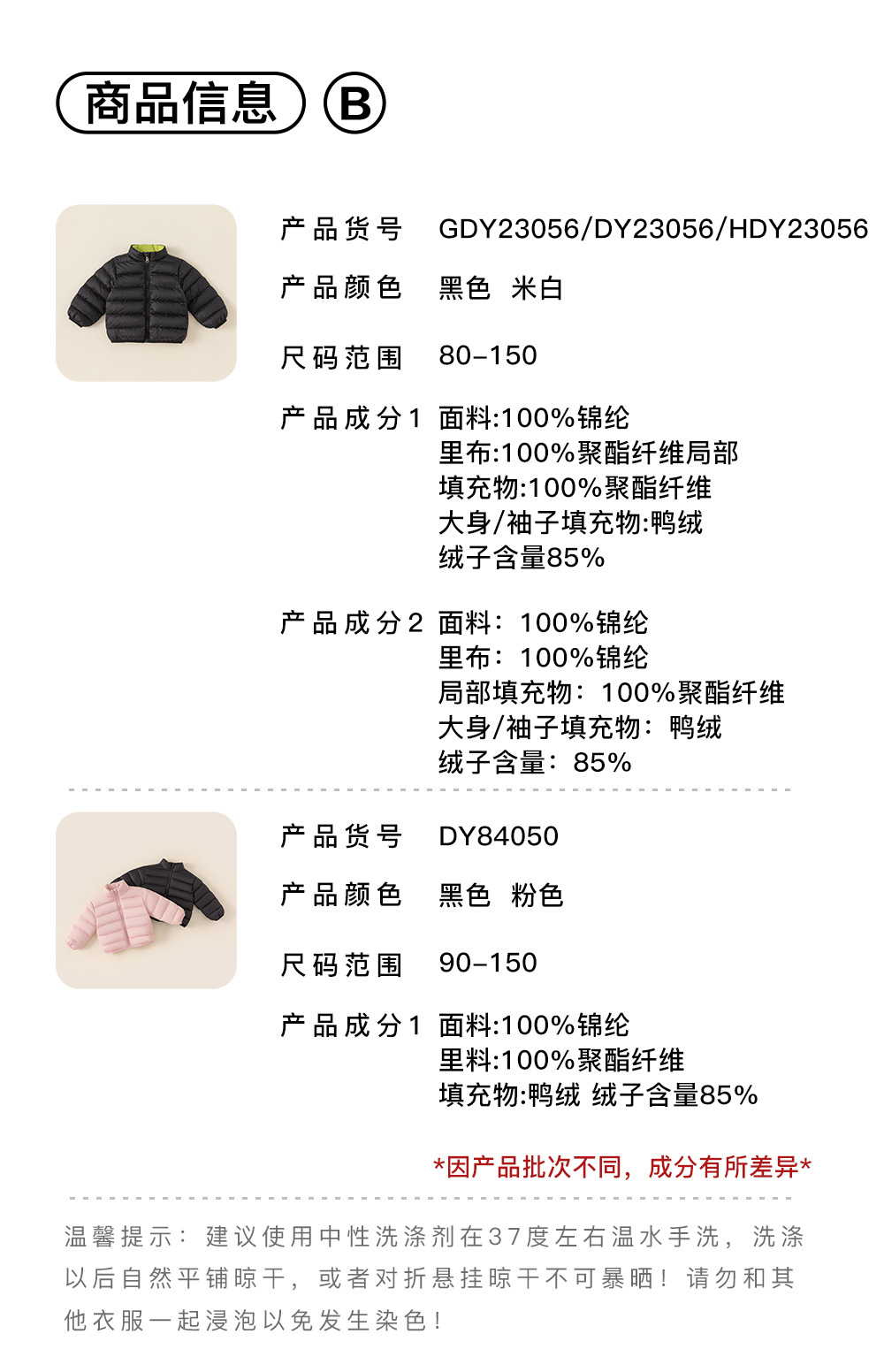 Babycity de doble cara de pato blanco abajo de los niños abajo liner niños y niñas casual abajo chaqueta DY23056