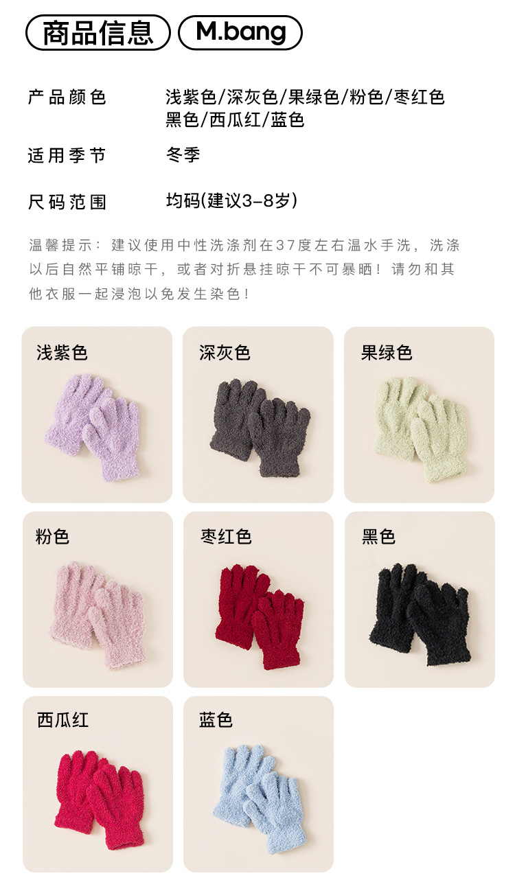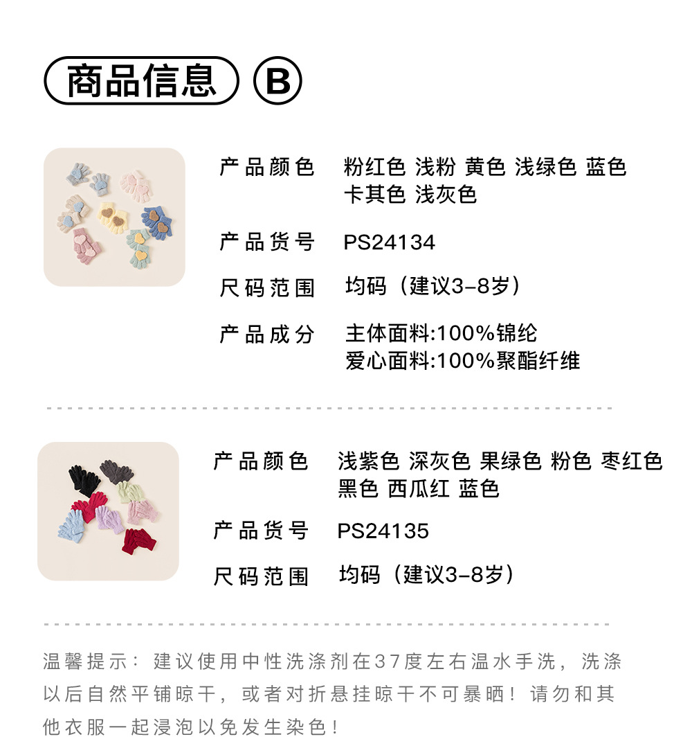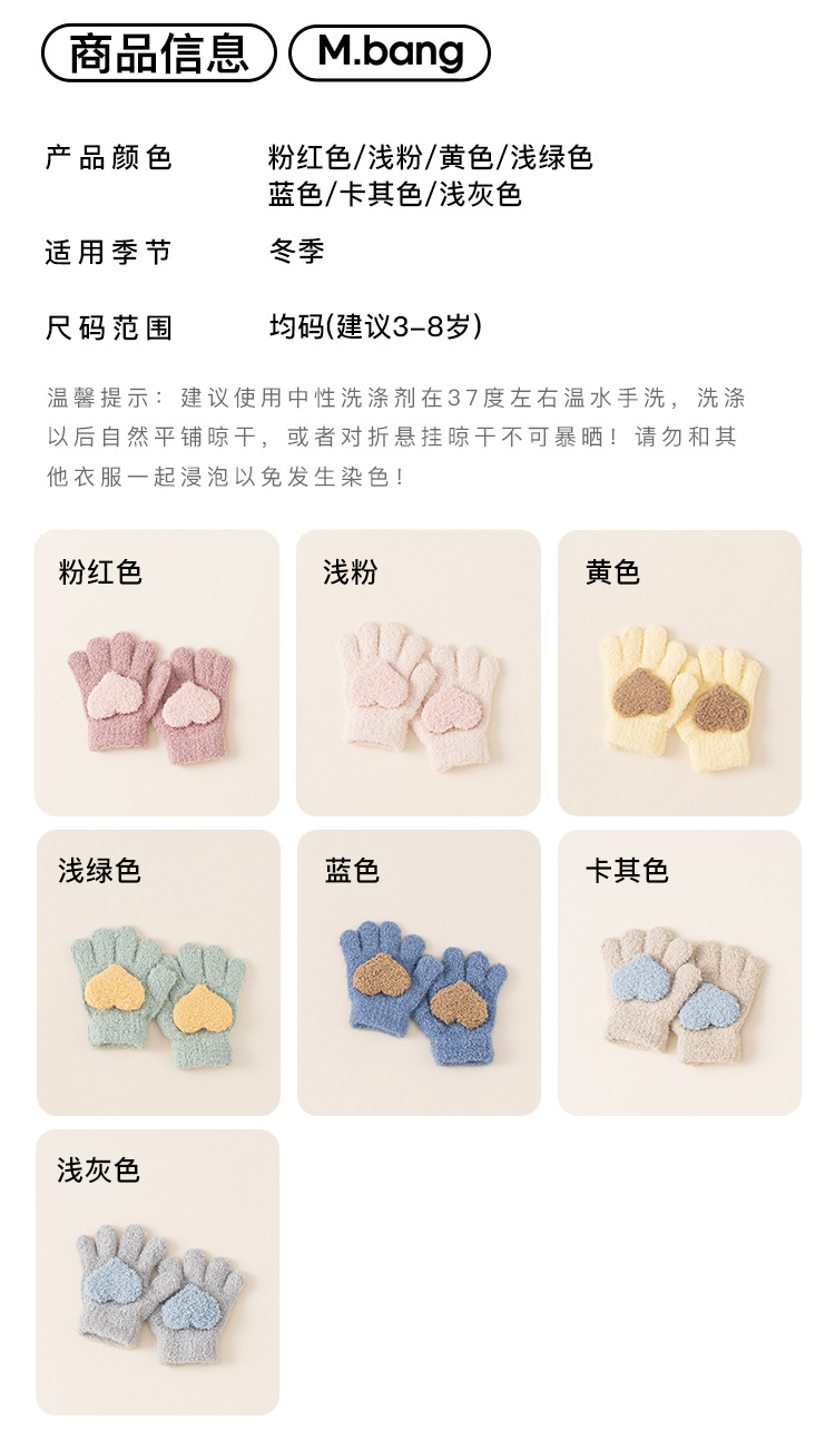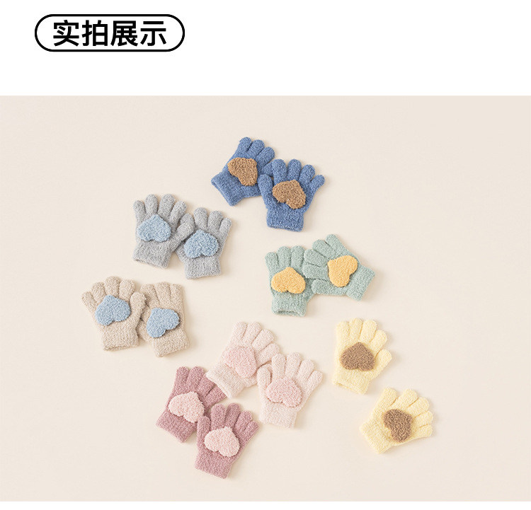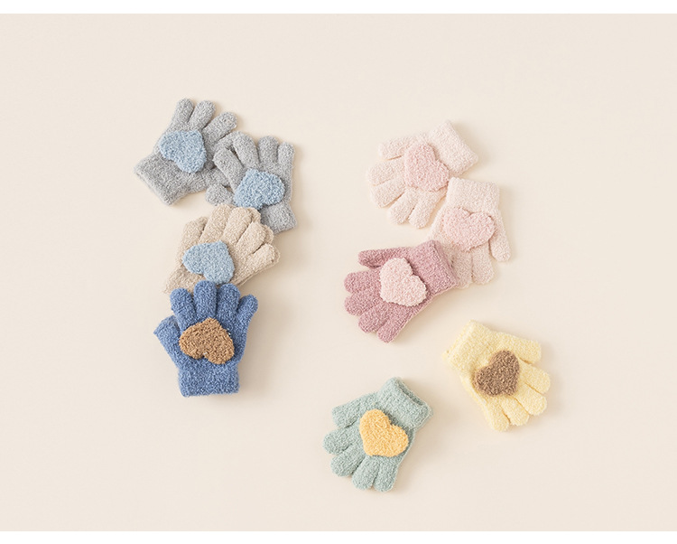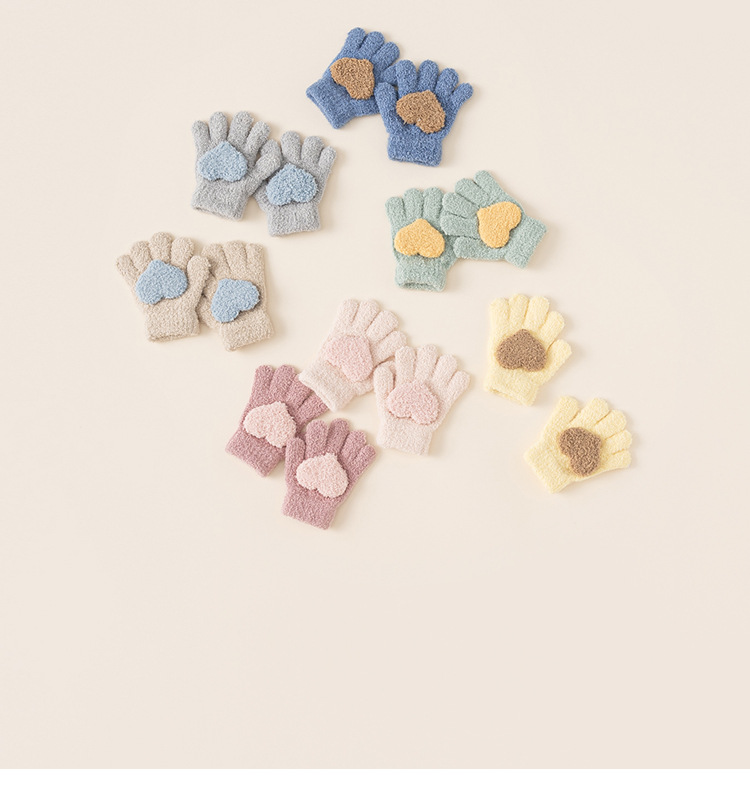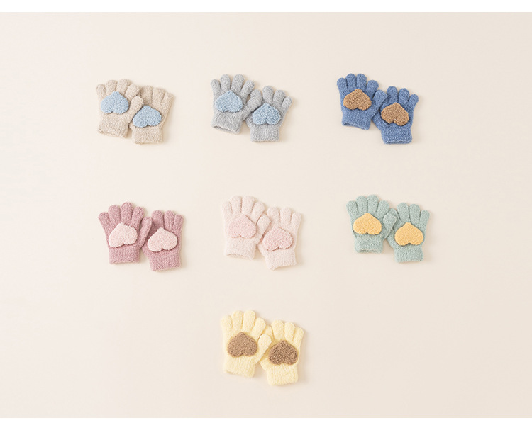 Yoobao ropa infantil guantes de niñas amor guantes de lana otoño y invierno nuevo bebé dulce guantes de punto de cinco dedos