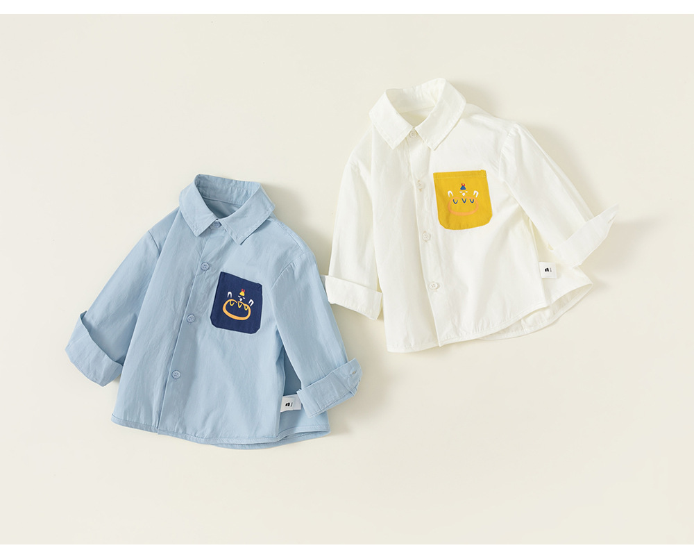 Youbao ropa para niños camisa de bolsillo de color de contraste para niños primavera y otoño camisa casual de manga larga con solapa para niños QY83040