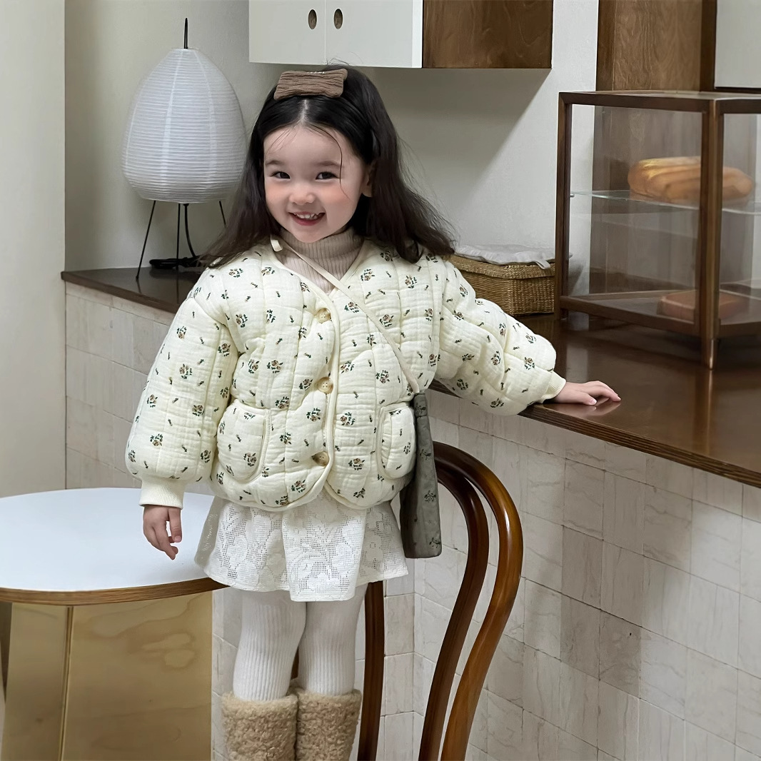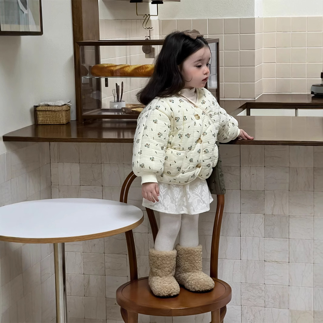 Invierno para niños más chaqueta acolchada de algodón de terciopelo ropa de salida para bebés 2024 ropa de otoño e invierno ropa para niños coreanos chaqueta acolchada para niñas