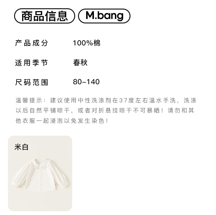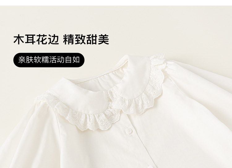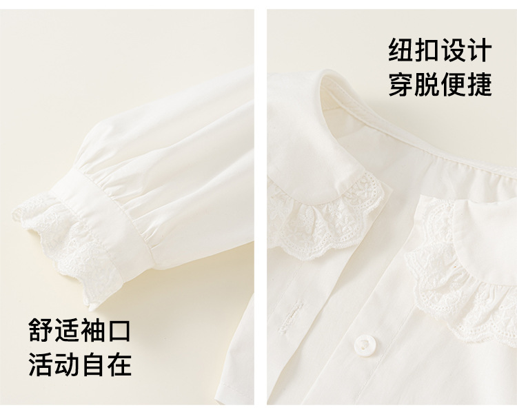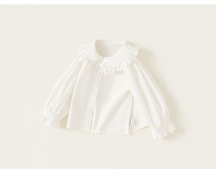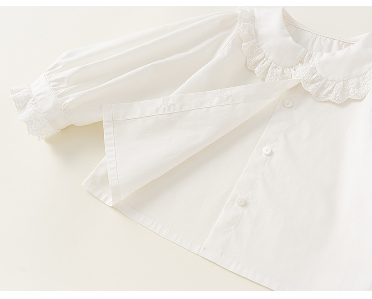 Yoobao ropa infantil 2025 otoño camisa blanca de niña nueva muñeca de encaje cuello camisa de manga larga para bebés