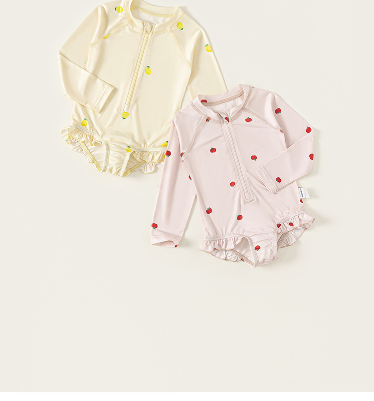 Traje de baño para niñas para niños Yubao 2025 verano nuevo estilo estampado traje de baño de una pieza para niños y mujeres conservadoras