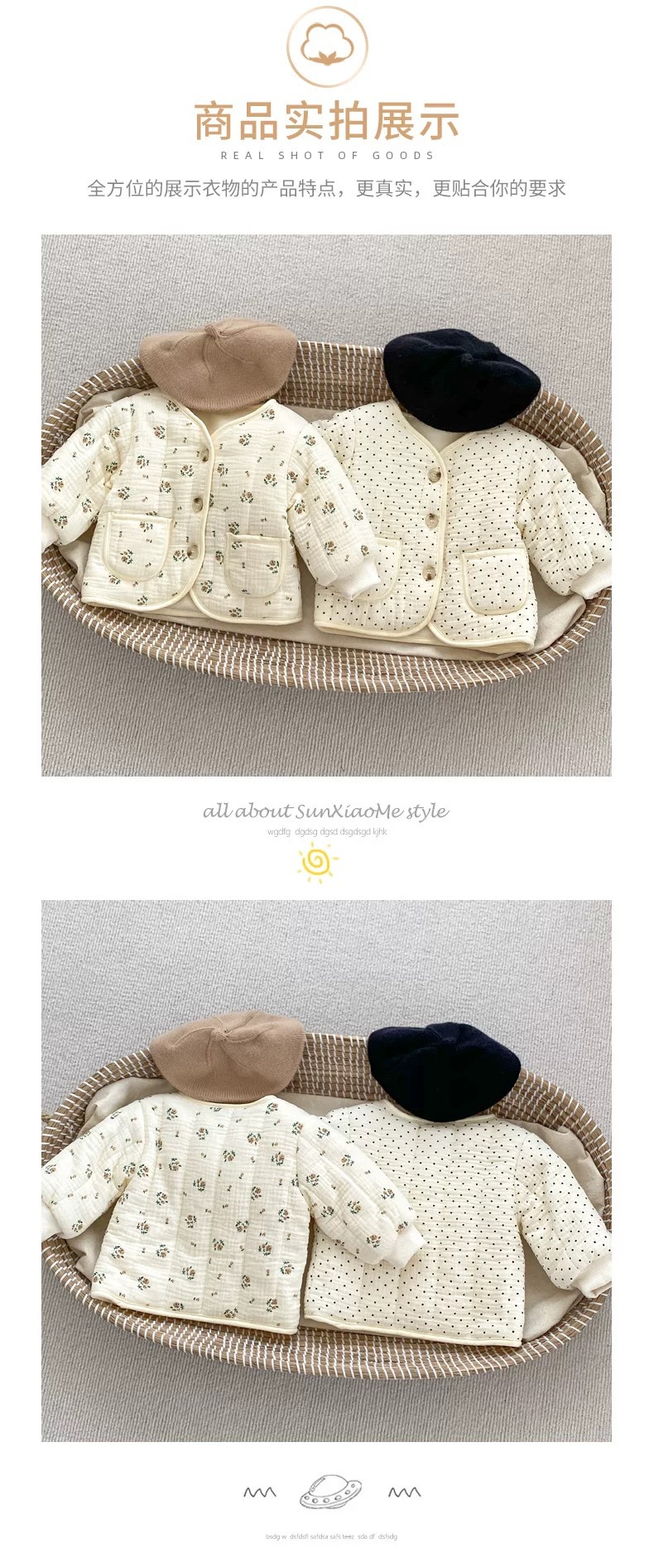 Capa de algodón para niños invierno engrosado bebé fuera de la ropa 2025 otoño y invierno ropa coreana impresa de hilo de algodón de acero