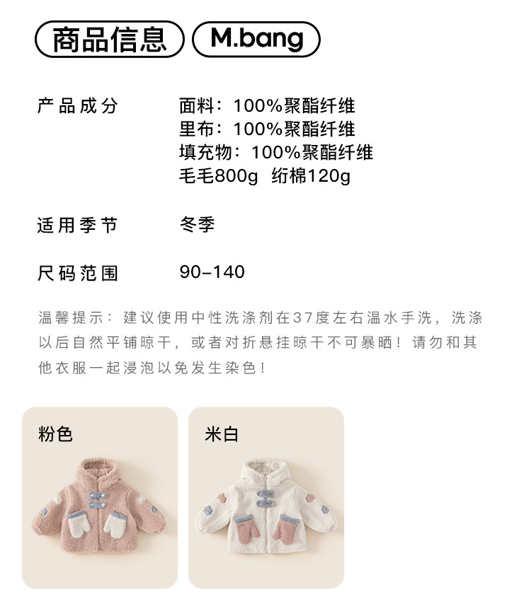 Yubao ropa infantil de niñas abrigo de lana de invierno nuevo bebé femenino grueso chaqueta con capuzas de invierno para niños