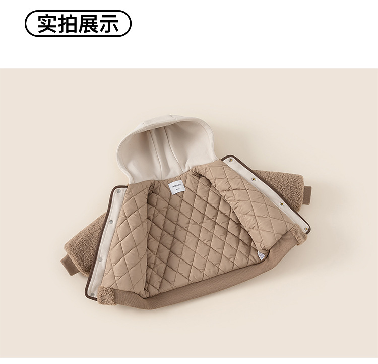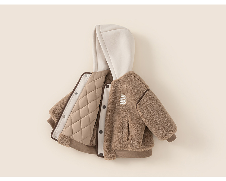 Yubao ropa infantil para niños más terciopelo grueso y cálido falso dos piezas de suéter de algodón de invierno chaqueta de algodón encapuchado para niños
