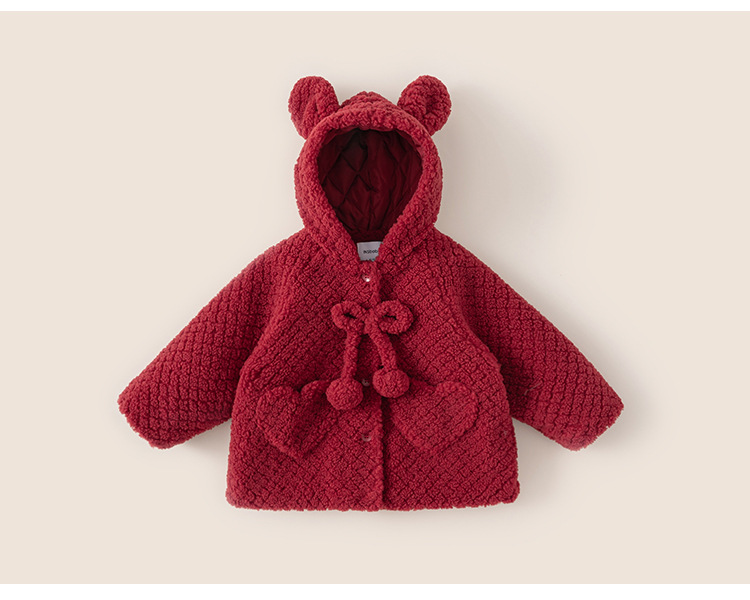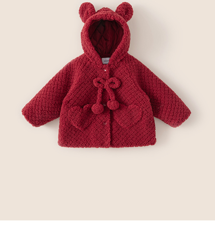 Yubao ropa infantil de niñas lana invierno nuevo estilo de Navidad Año Nuevo niños orejas capuchones calentamiento abrigo grueso