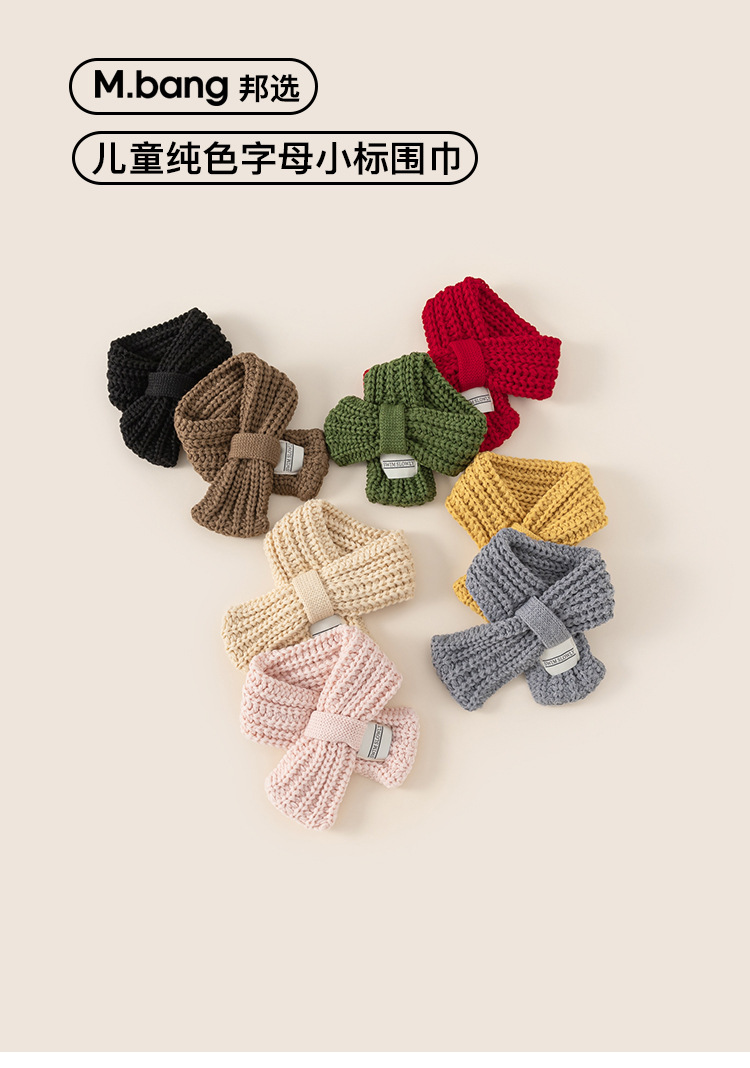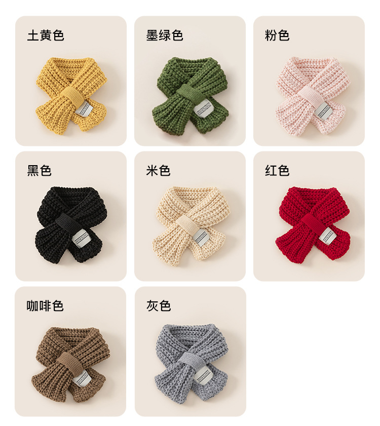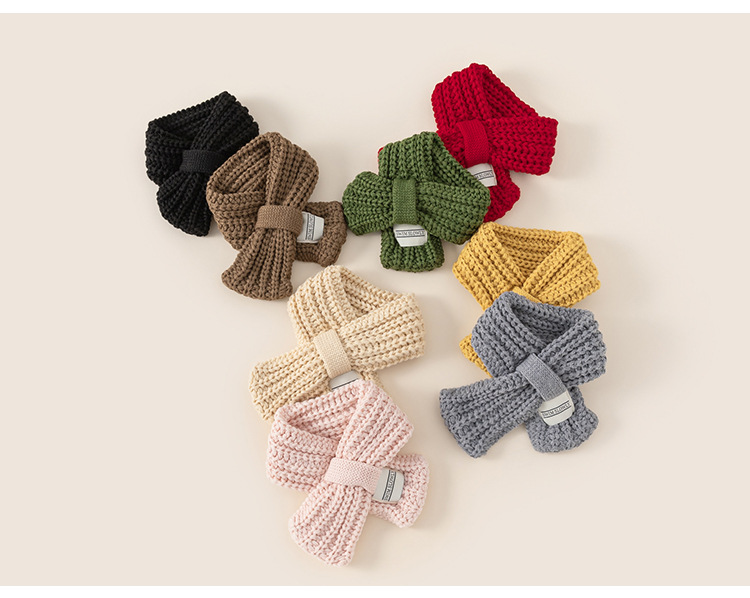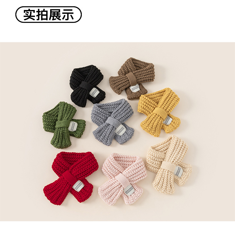 Bufandas para niños de invierno para niños de moda etiqueta de tela de color sólido calentamiento tejido lana cruzada collar