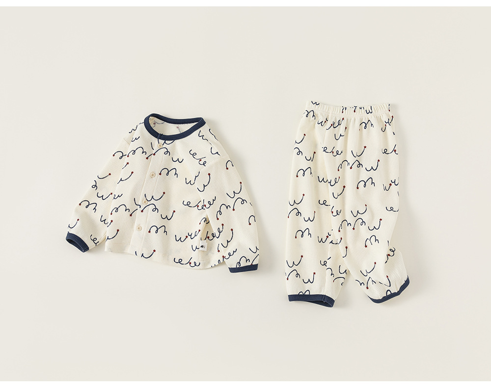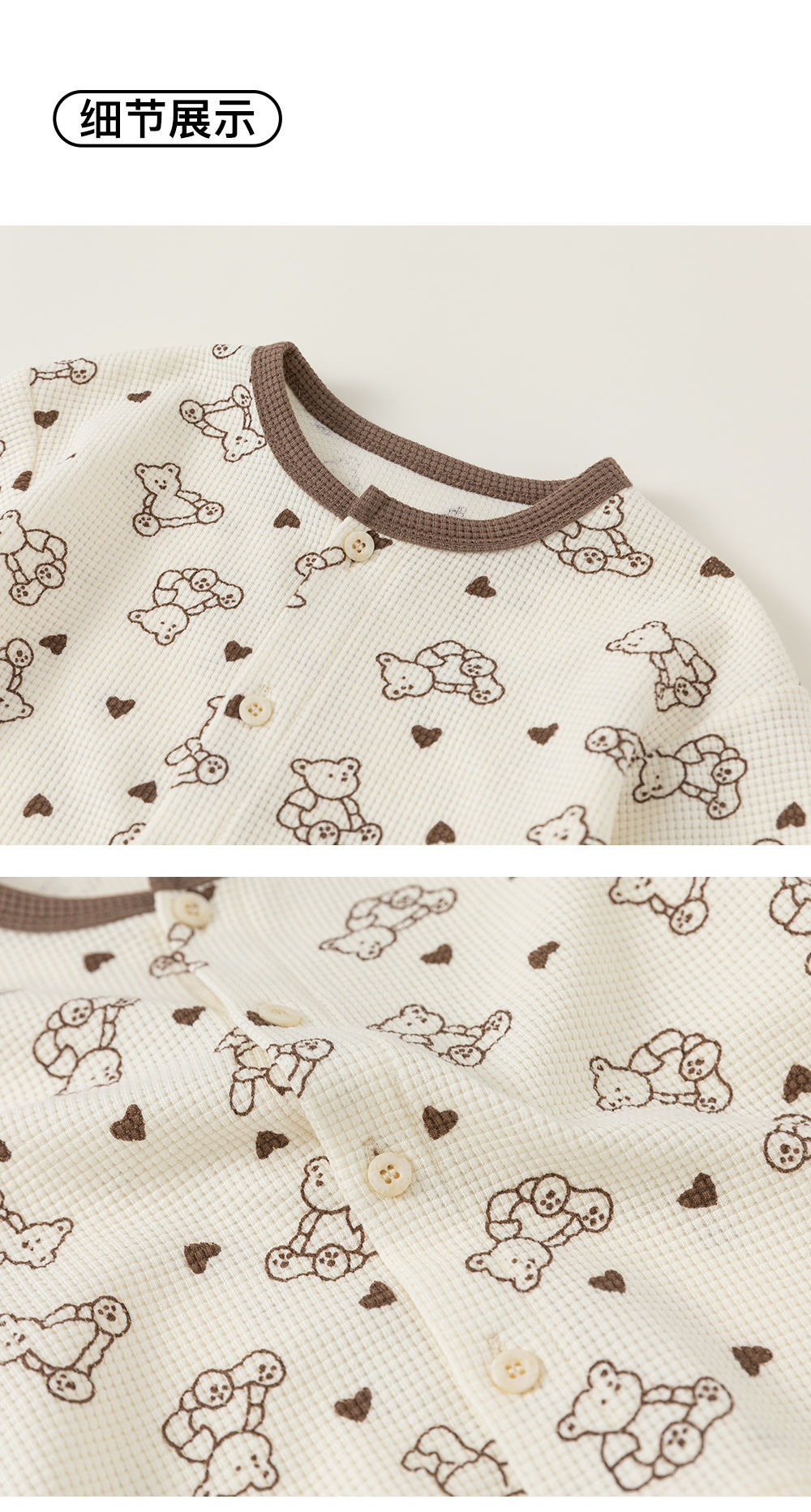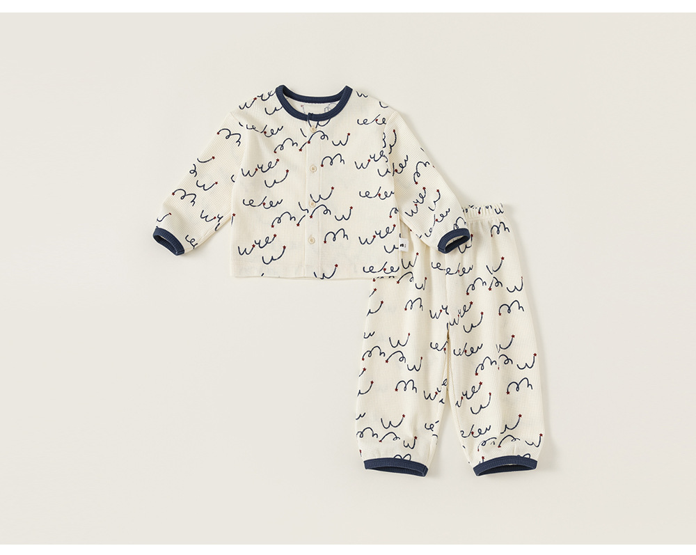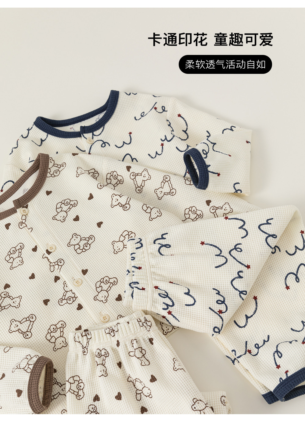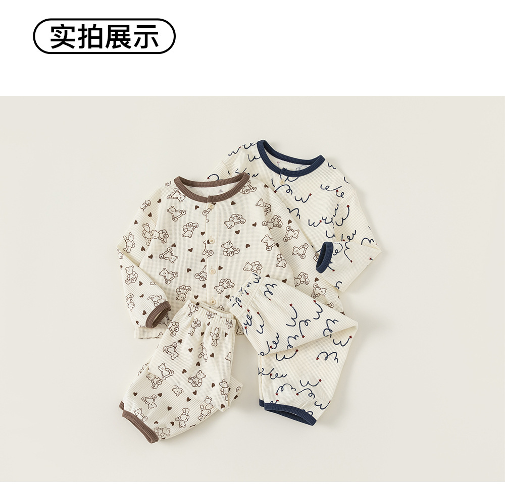 Babycity niños pijamas traje niños y niñas waffle cuello redondo cardigan ropa para el hogar conjunto de dos piezas CT24028
