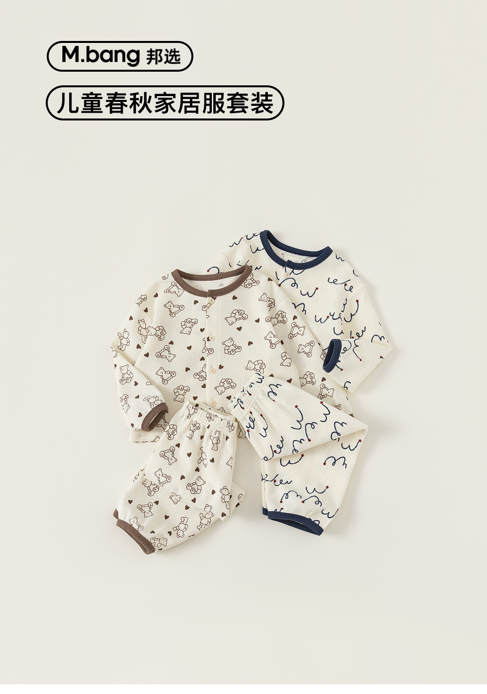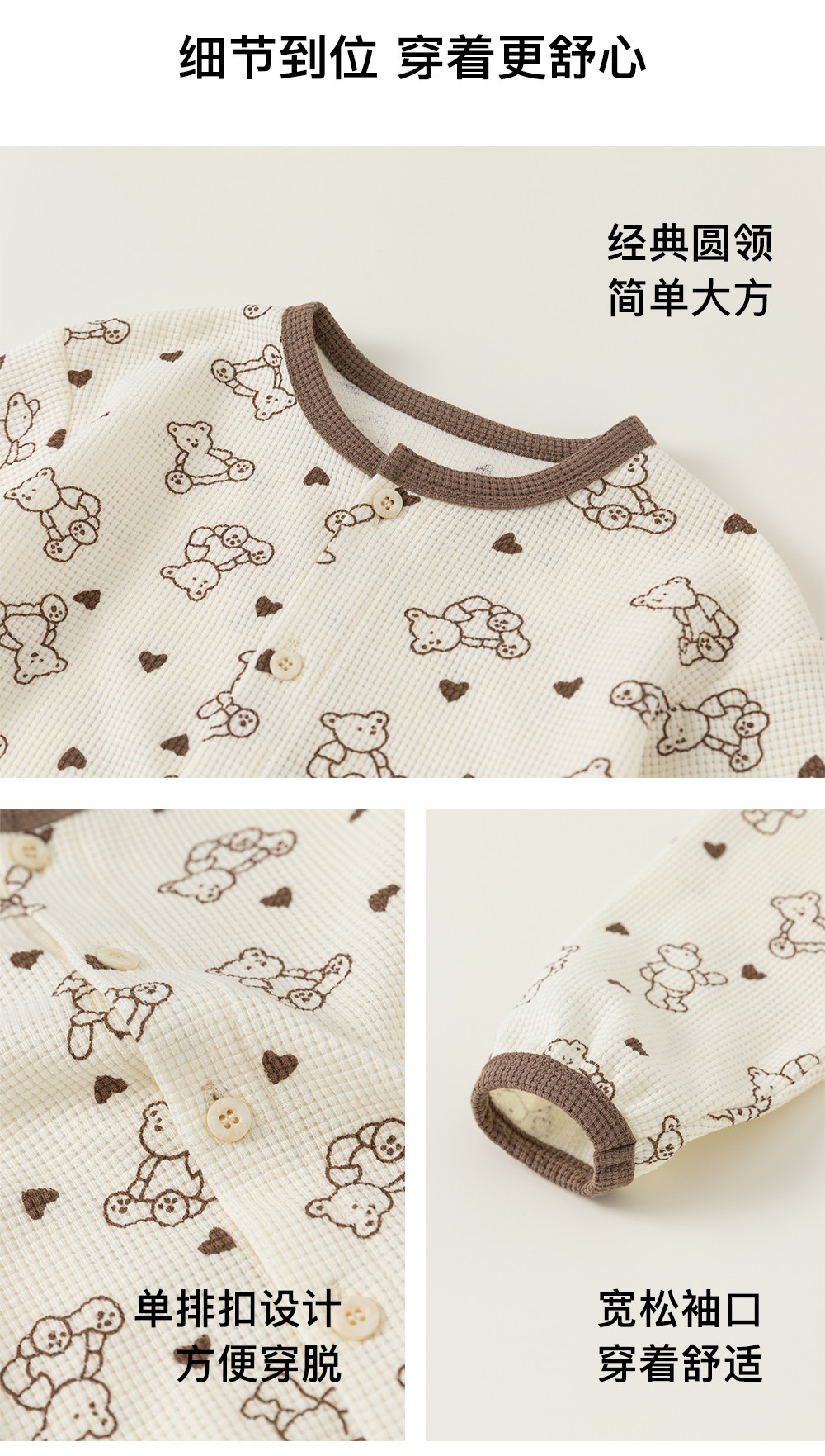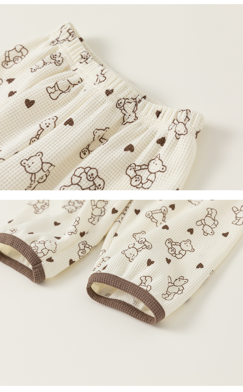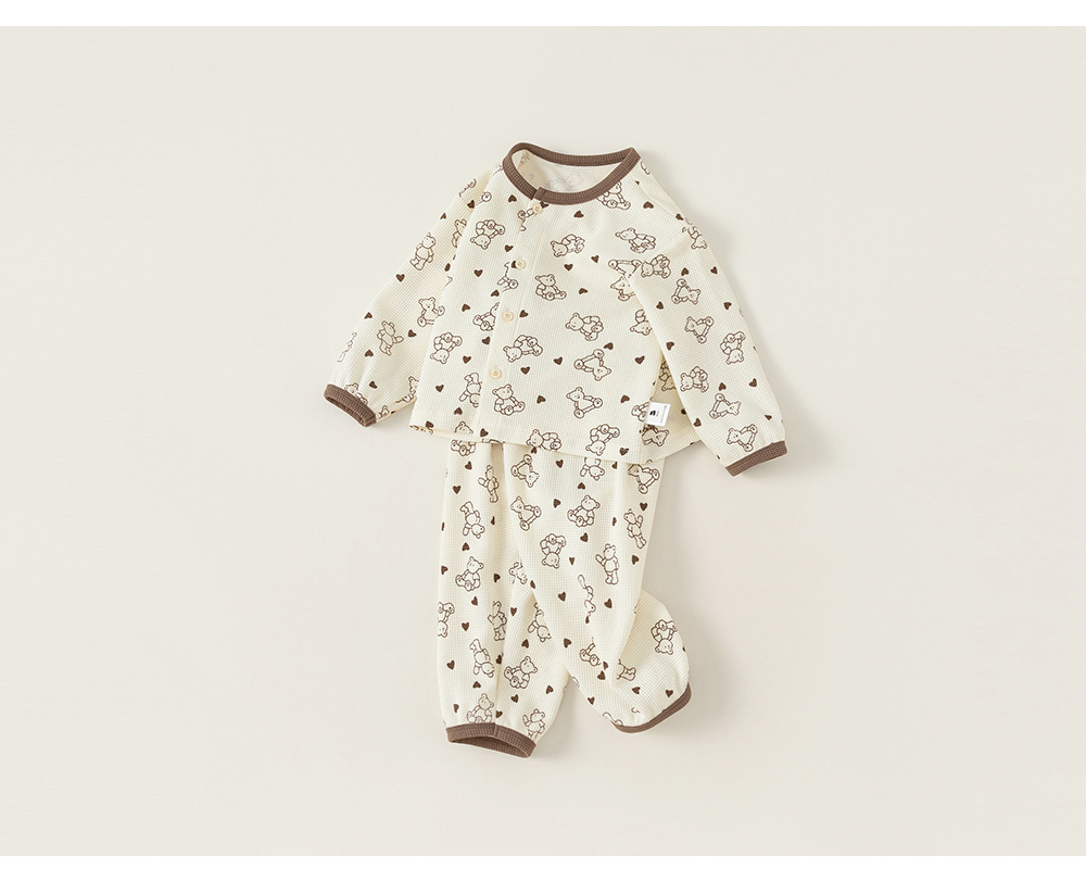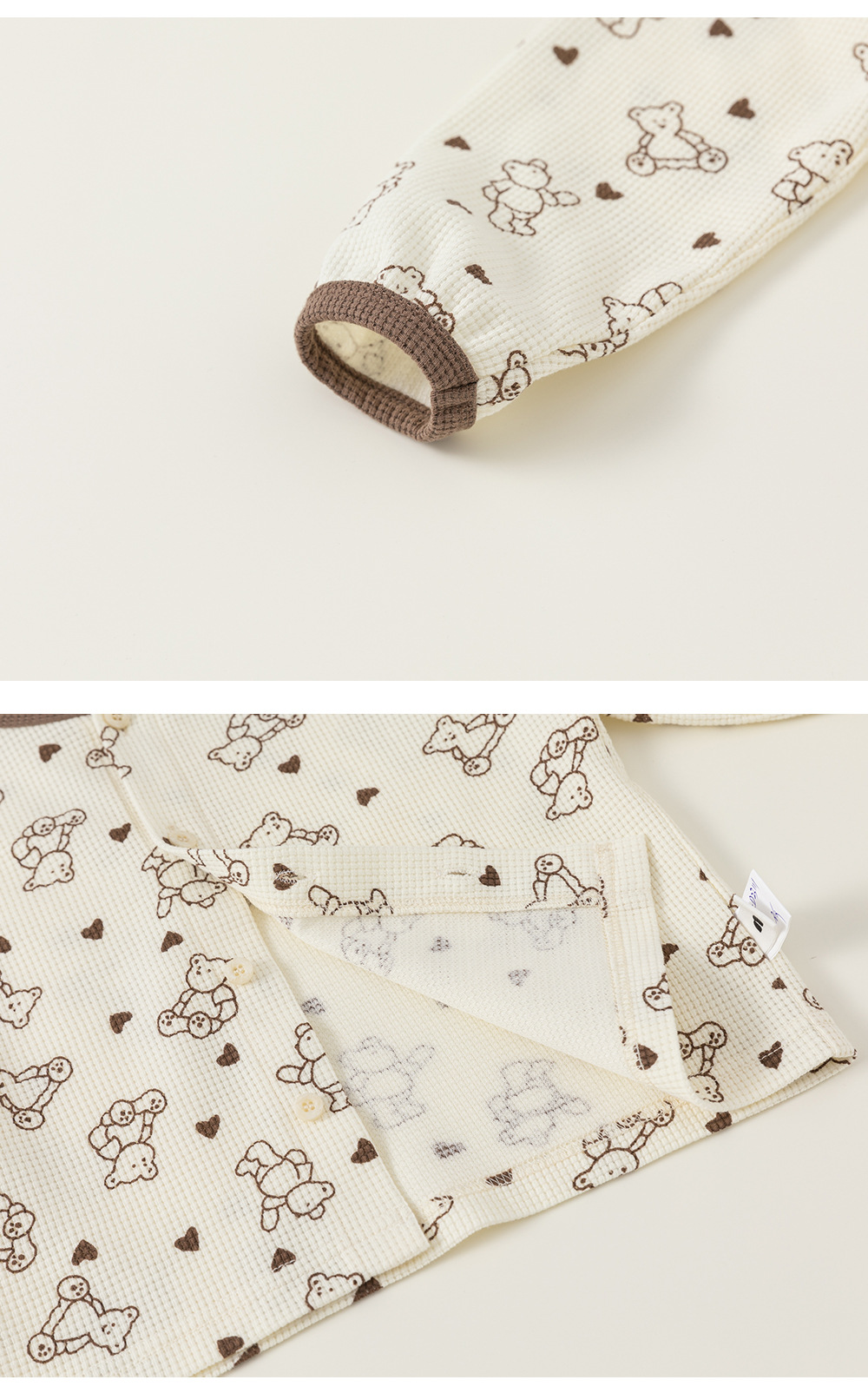 Babycity niños pijamas traje niños y niñas waffle cuello redondo cardigan ropa para el hogar conjunto de dos piezas CT24028